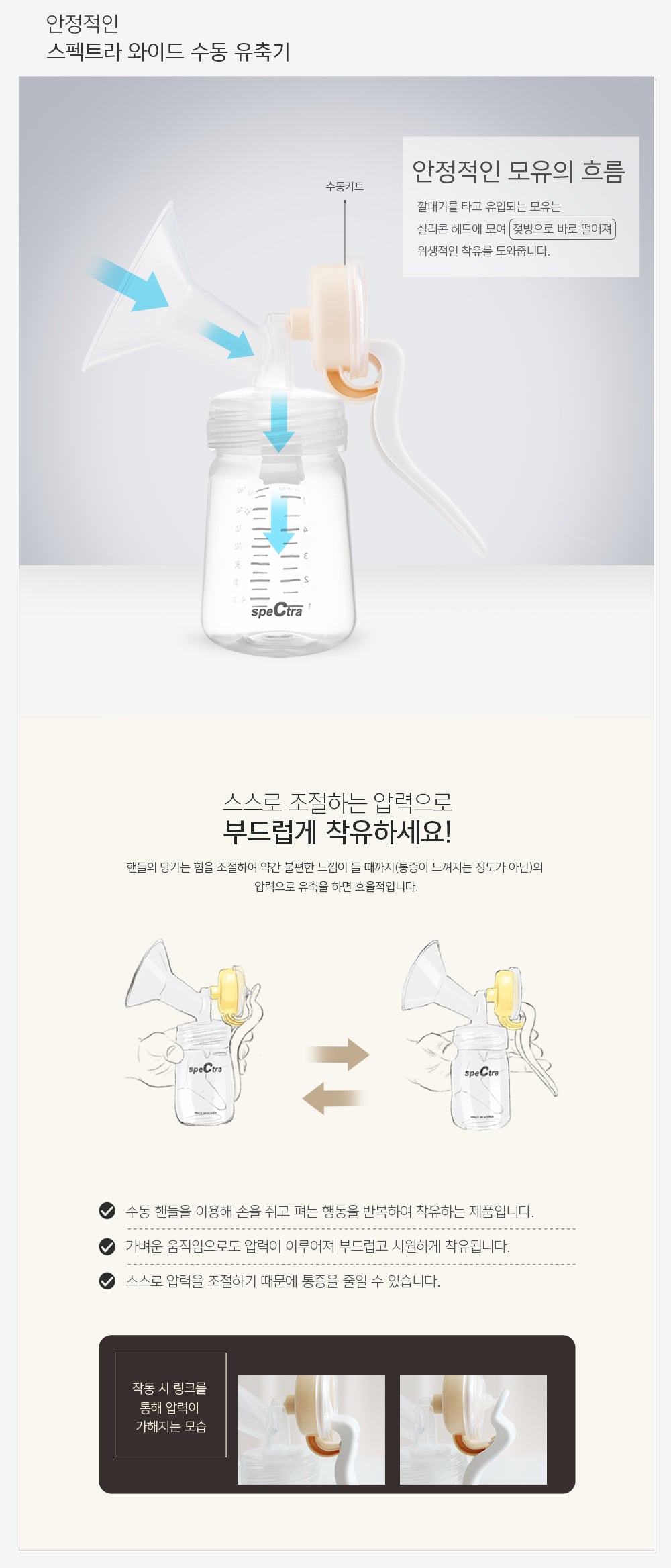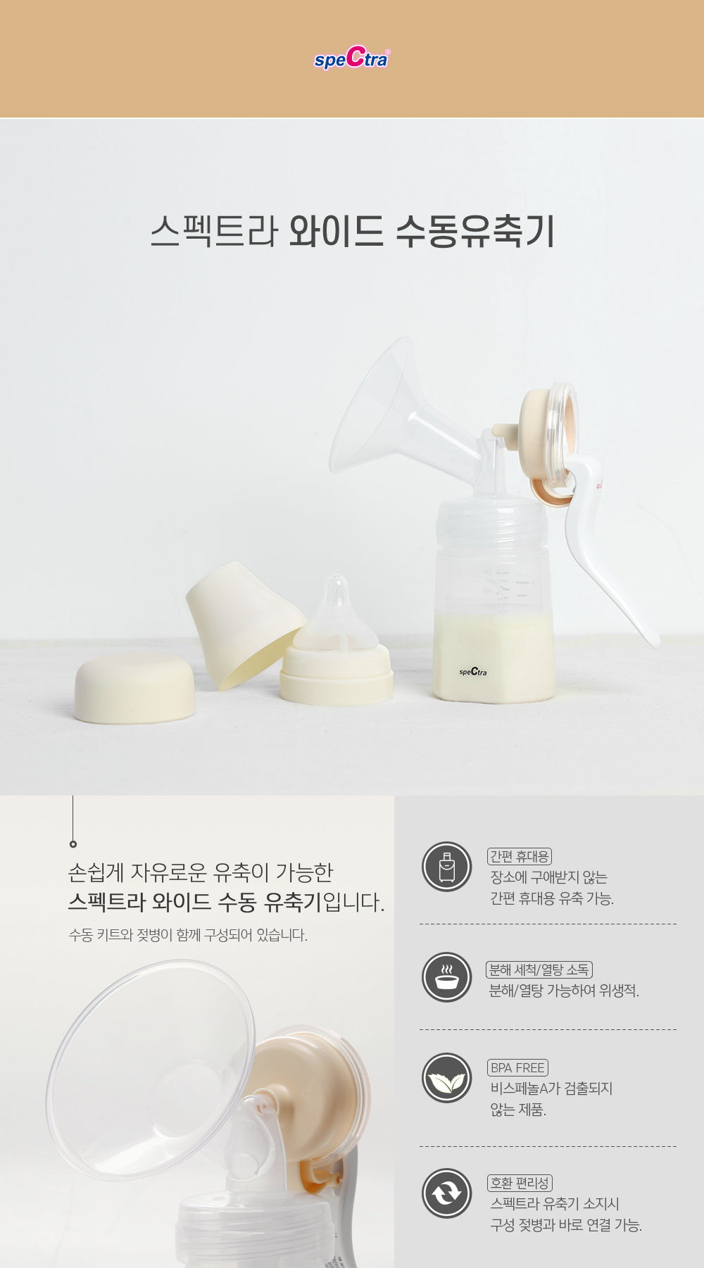 Spectra wide manual breast pump for enlarged breast pumping regardless of location