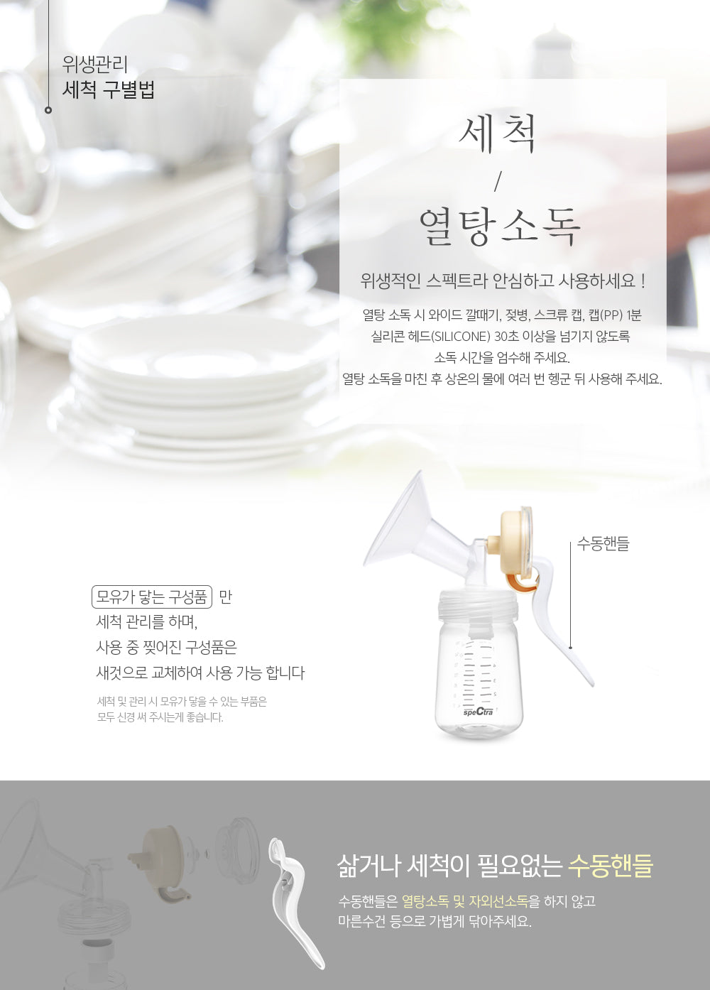 - Instead of boiling or UV sterilization, lightly wipe the manual handle with a dry towel.