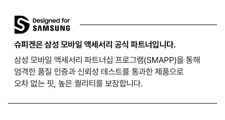 Spigen is an official partner of Samsung Mobile Accessories and a part of the Samsung Mobile Accessory Partnership Program (SMAPP). Each product undergoes rigorous quality certification and reliability testing, ensuring a perfect fit and premium quality.