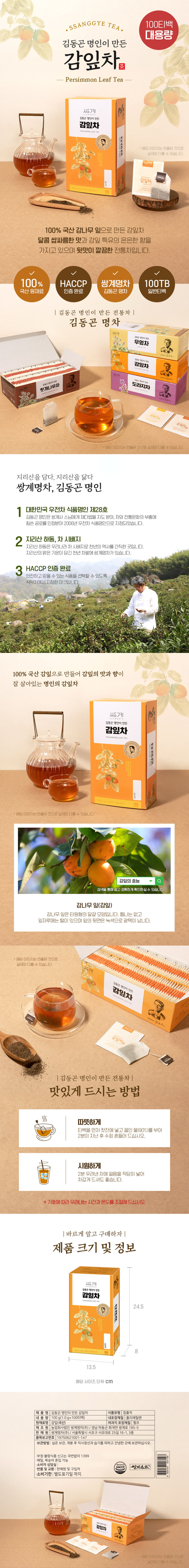 Experience the authentic taste of SSANGGYE Persimmon Leaf Tea, masterfully created by Food Master Kim Dong-gon, Korea’s Ujeoncha Food Master No. 28. Handcrafted with 100% Korean persimmon leaves, this tea captures the pure aroma, delicate sweetness, and gentle bitterness of traditional Korean tea culture.