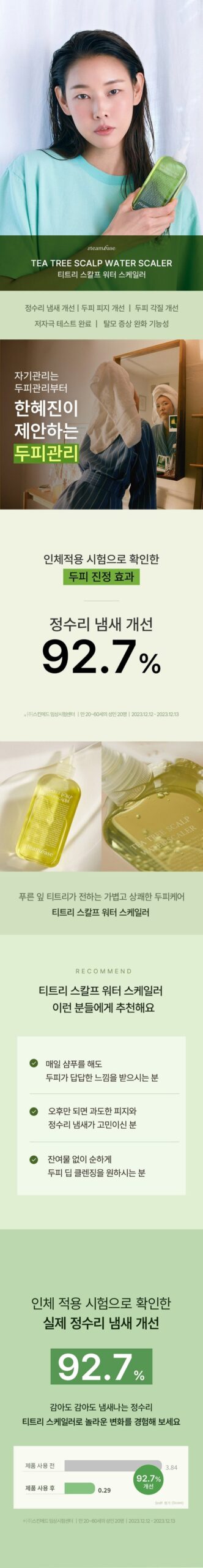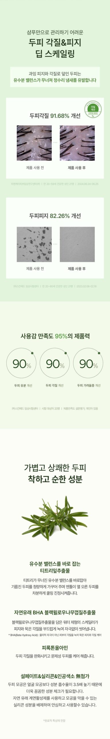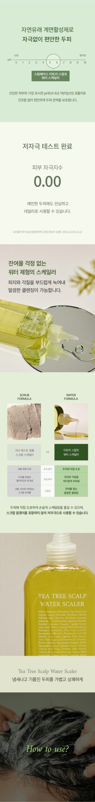 - Tea Tree Leaf Extract: Corrects oil-water balance, refreshing the oily scalp.