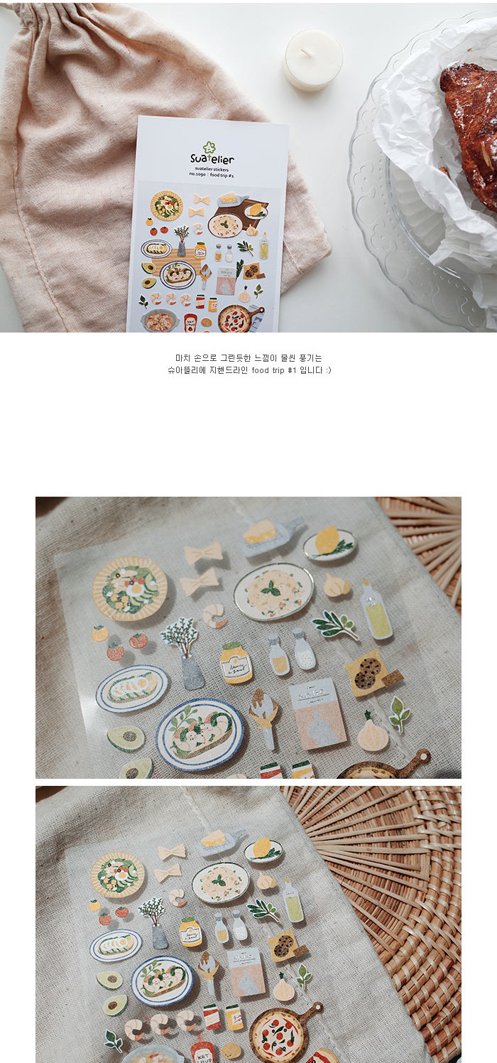 Embark on a culinary journey to Europe with this sophisticated sticker collection from SUATELIER. Food Trip #1 features elegant Western cuisine favorites, from Italian pasta to French cheese boards and fine wines.