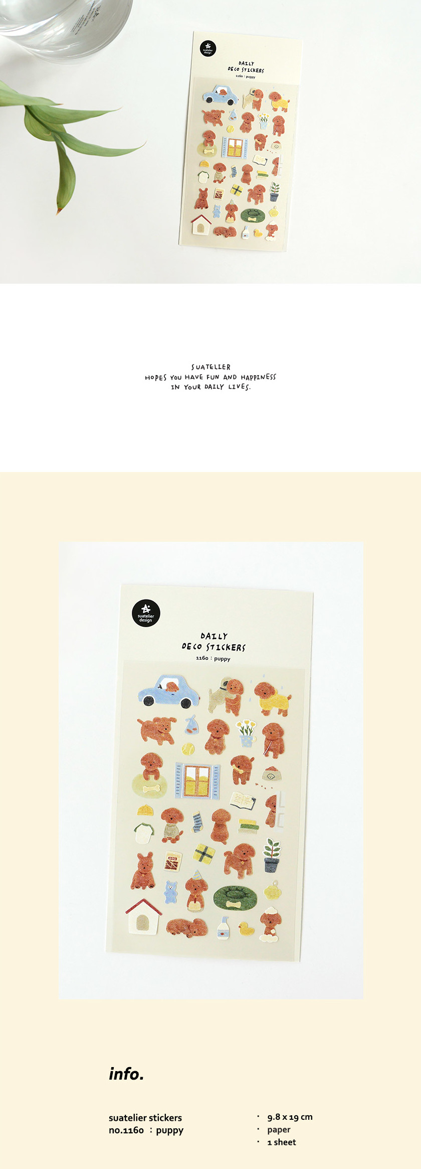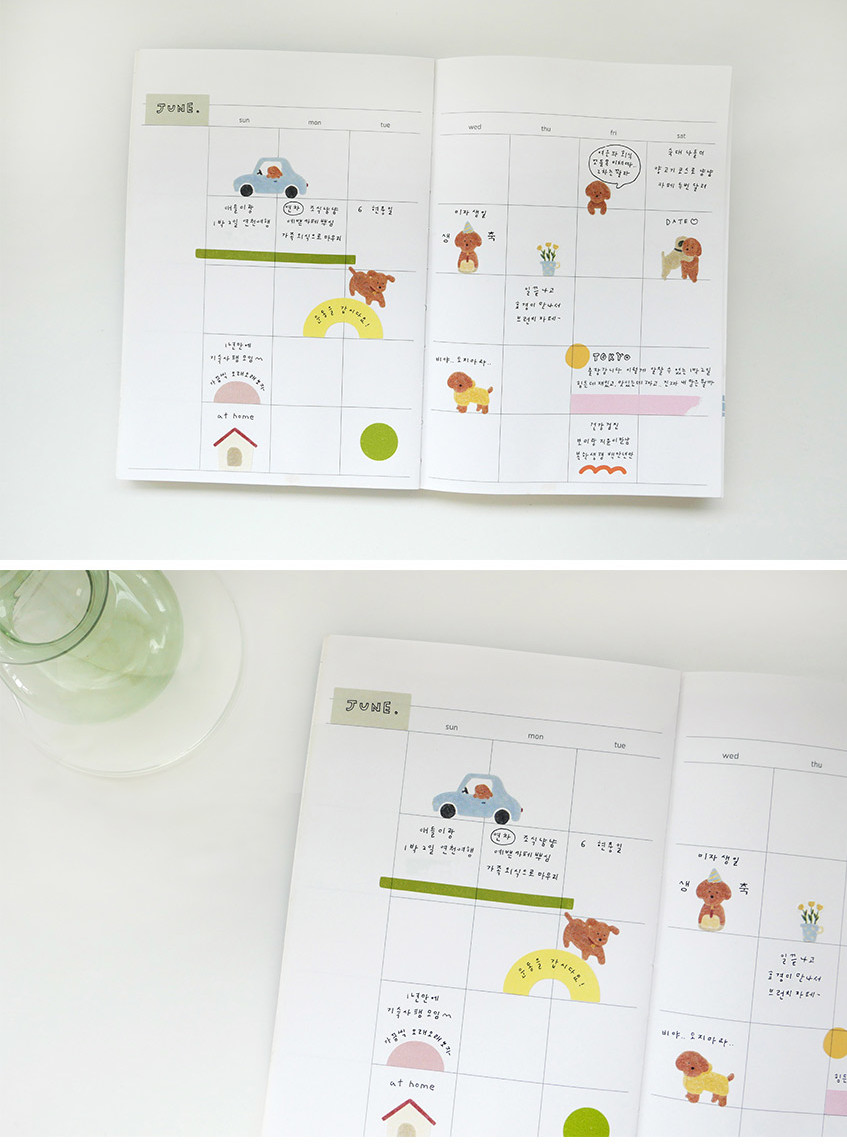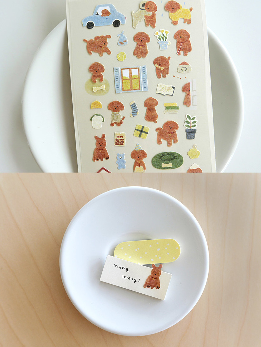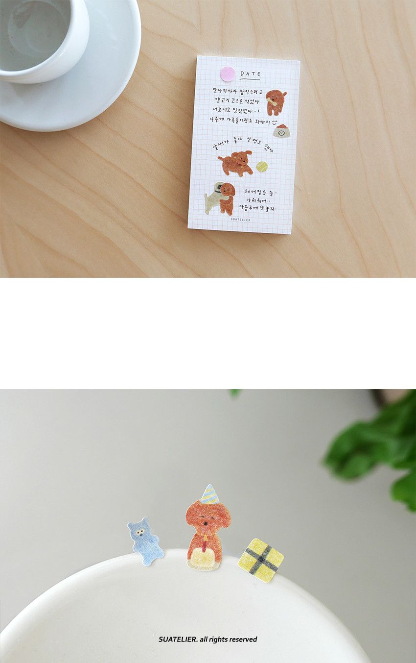 Fill your planner with cuteness using SUATELIER Puppy Stickers, featuring an adorable brown poodle/teddy bear dog in various poses and daily situations. From car rides and playtime to reading and relaxing, these charming Korean stickers capture the joy of puppy life.