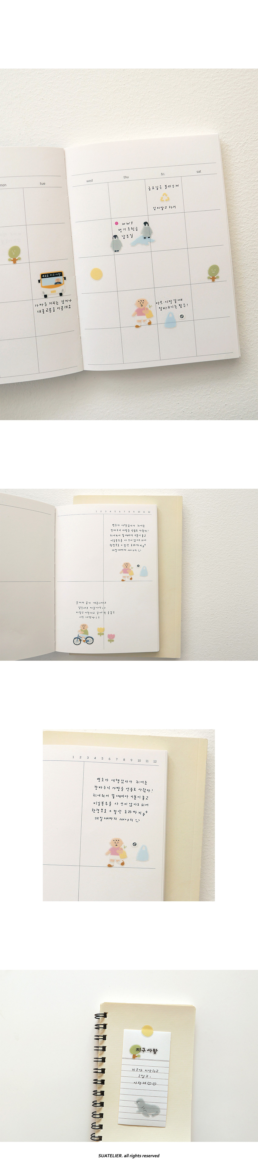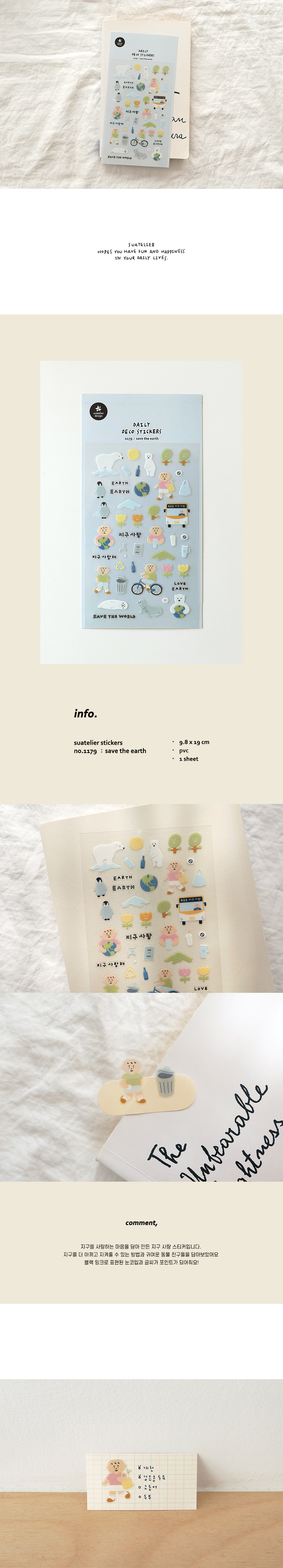 Show your love for the planet with SUATELIER Save The Earth Stickers, featuring charming environmental-themed illustrations. From polar bears and penguins to recycling symbols and reusable bags, these Korean stickers promote eco-consciousness while adding cute decoration to your planner.