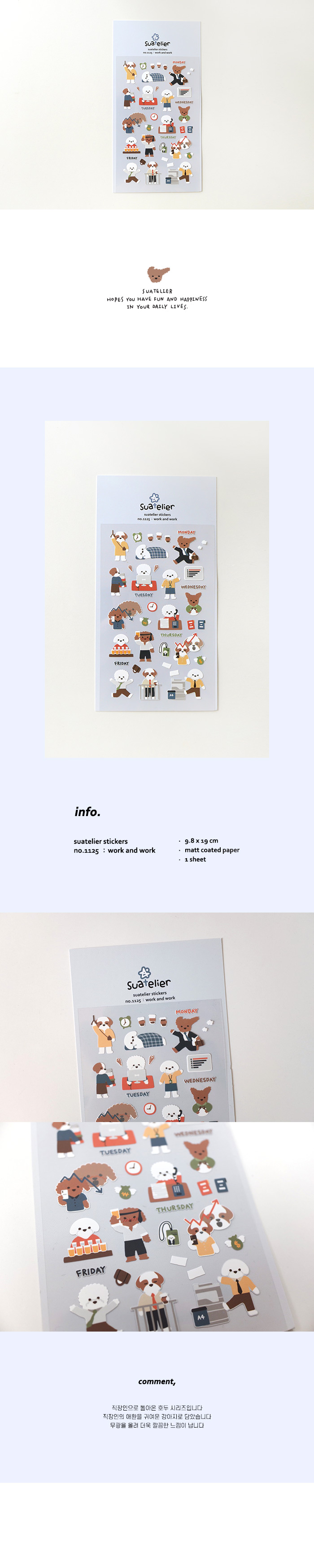 SUATELIER Work And Work Stickers – Cute Dog Office Sticker Sheet