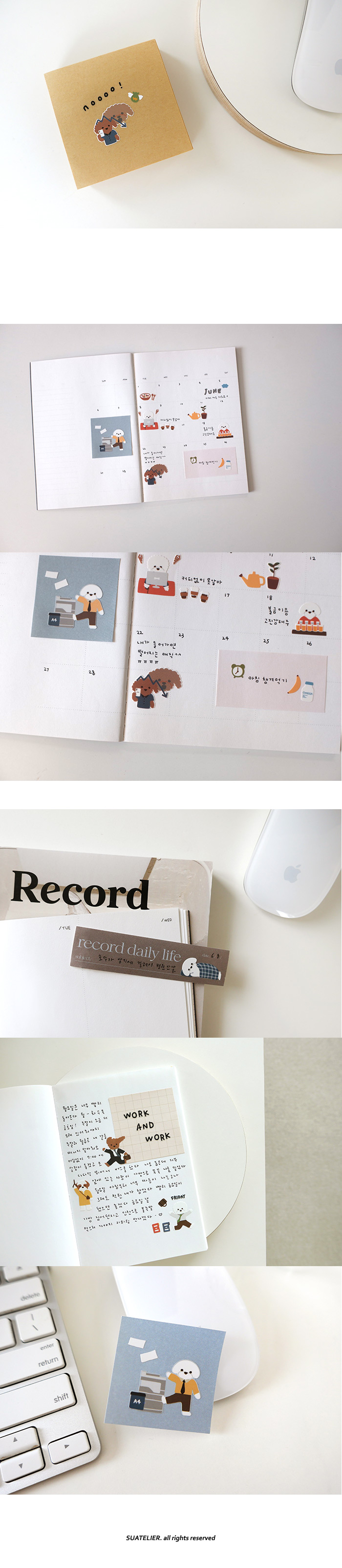 Make your workweek planning fun with SUATELIER Work And Work Stickers, featuring adorable dog characters navigating the workweek from Monday to Friday. These charming Korean stickers show cute bichon and poodle characters going through daily office life – perfect for decorating your planner and tracking your work schedule.
