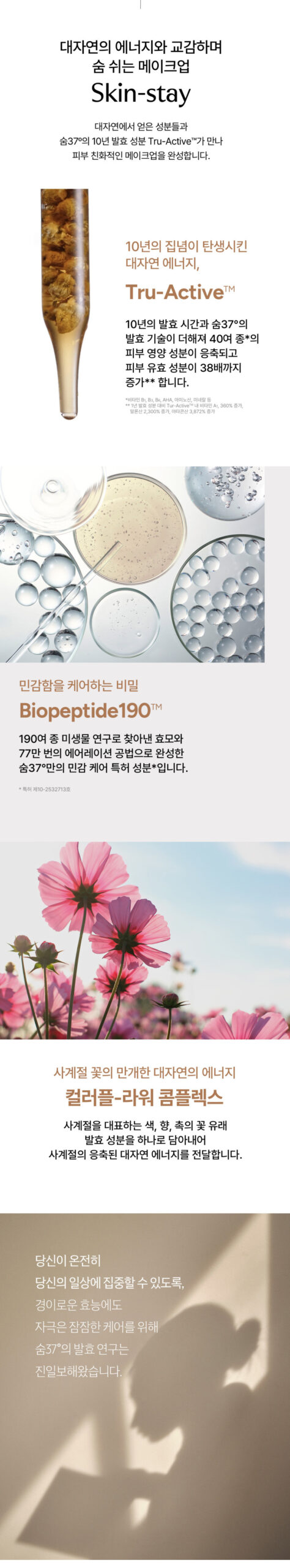 - TRU-ACTIVE™: A signature 10-year fermented ingredient by Sum37 that enhances the makeup’s compatibility with your skin, enriched with 40 different skin nutrients for an active ingredient boost.