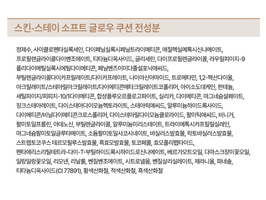 The Skin-stay Soft Glow Cushion offers a thin, delicate texture that adheres beautifully to the skin, thanks to its glow adhesion polymer that reacts with your skin’s temperature. Enjoy a healthy, clear glow that lasts up to 24 hours without tightness, flakiness, or darkening. The fine powder particles ensure long-lasting wear, while the formula’s high skincare ingredient content keeps your skin comfortable and breathing easily all day long.