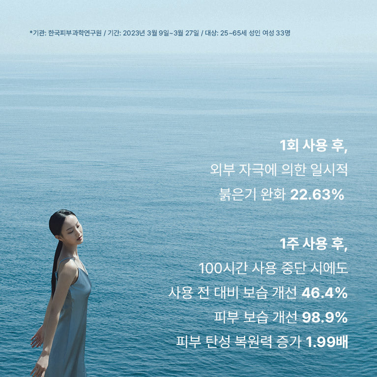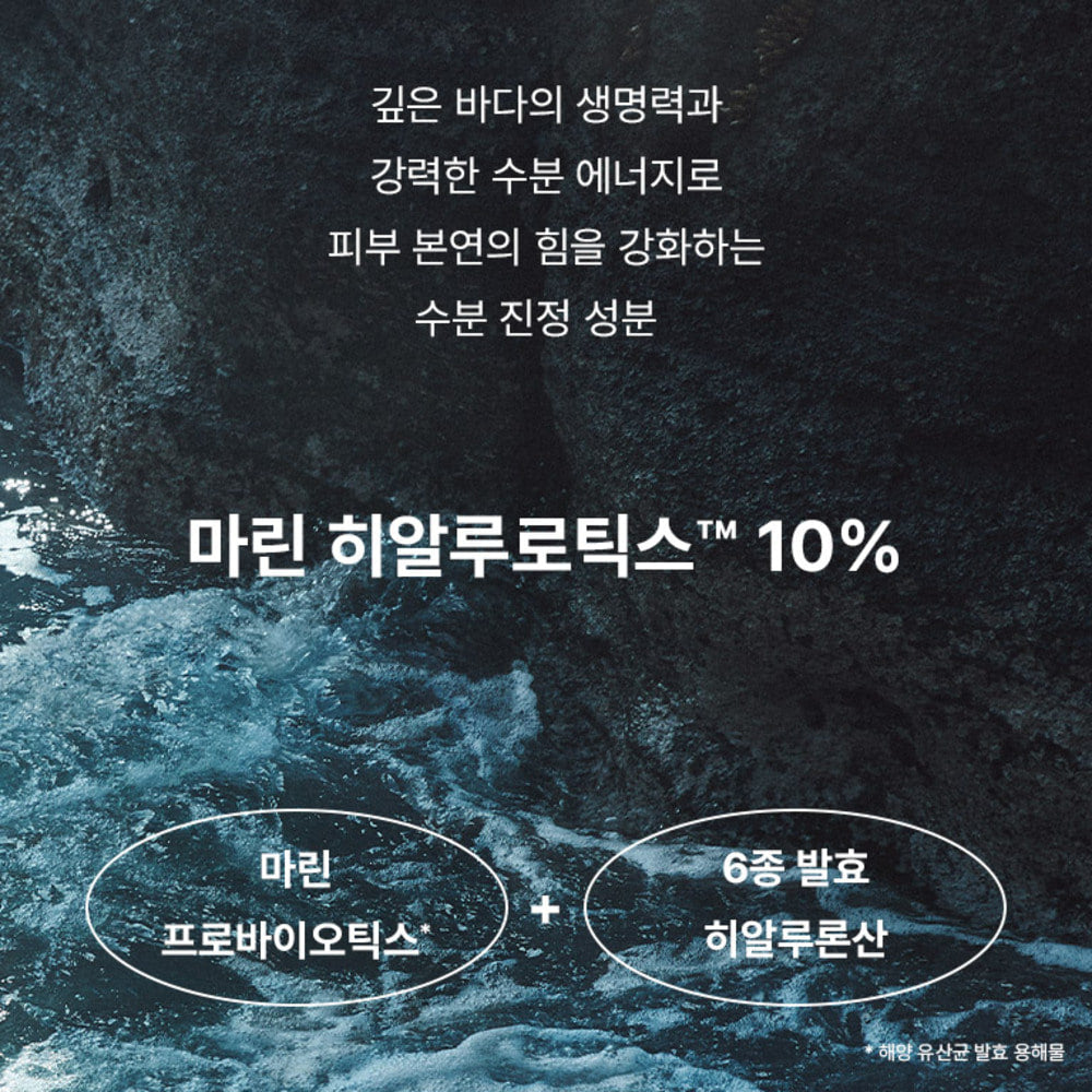 - Fermented Lysate of 45 Billion Marine Lactic Acid Bacteria: Strengthens the skin’s moisture barrier.