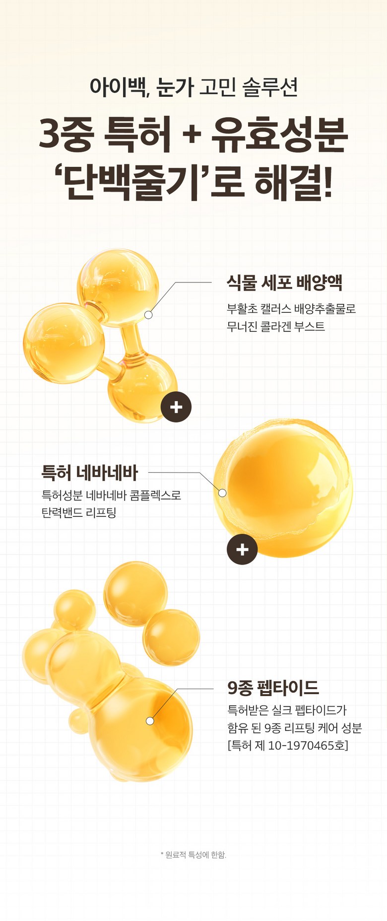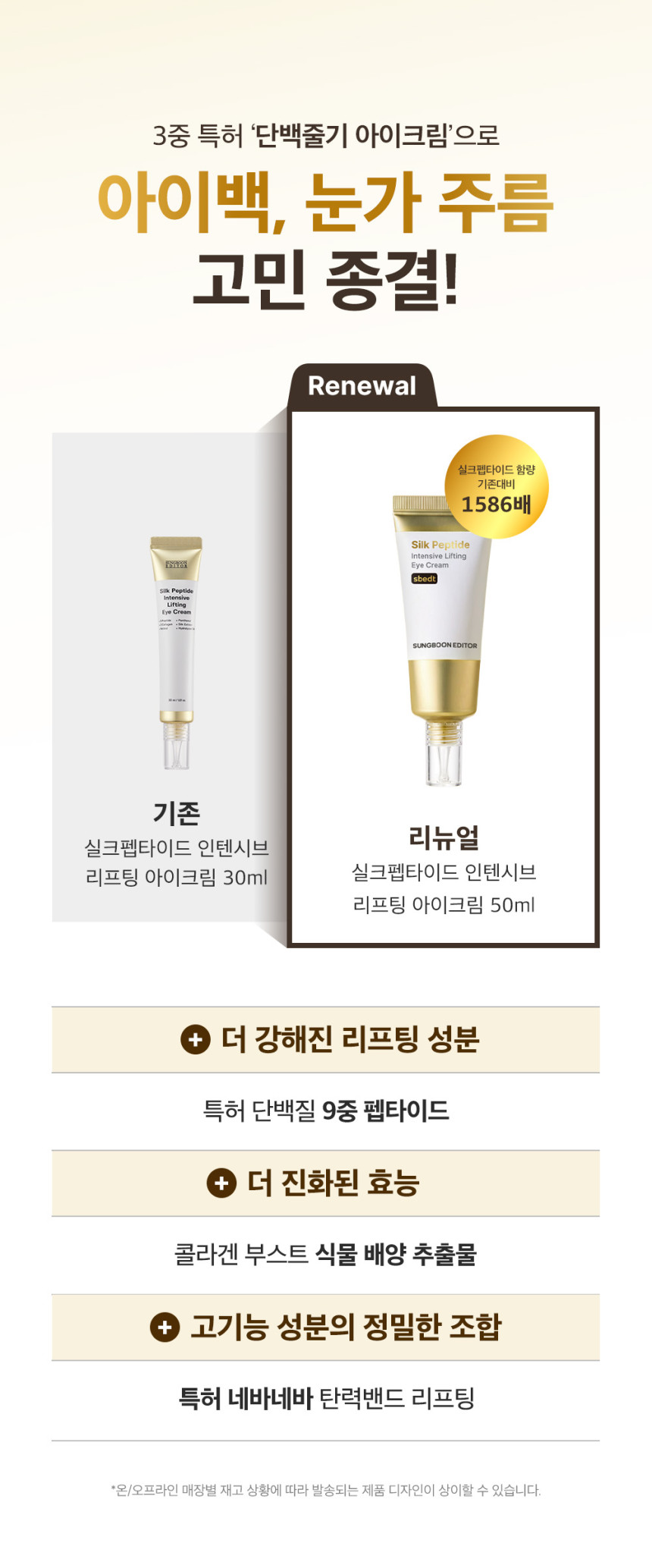 Say goodbye to concerns about eye bags and eye wrinkles with our triple patented ‘Protein Stem Eye Cream’! The new 50ml Renewal formula offers intensified lifting and firming power, now with 1586 times more Silk Peptide compared to the previous version, ensuring more potent and visible results.
