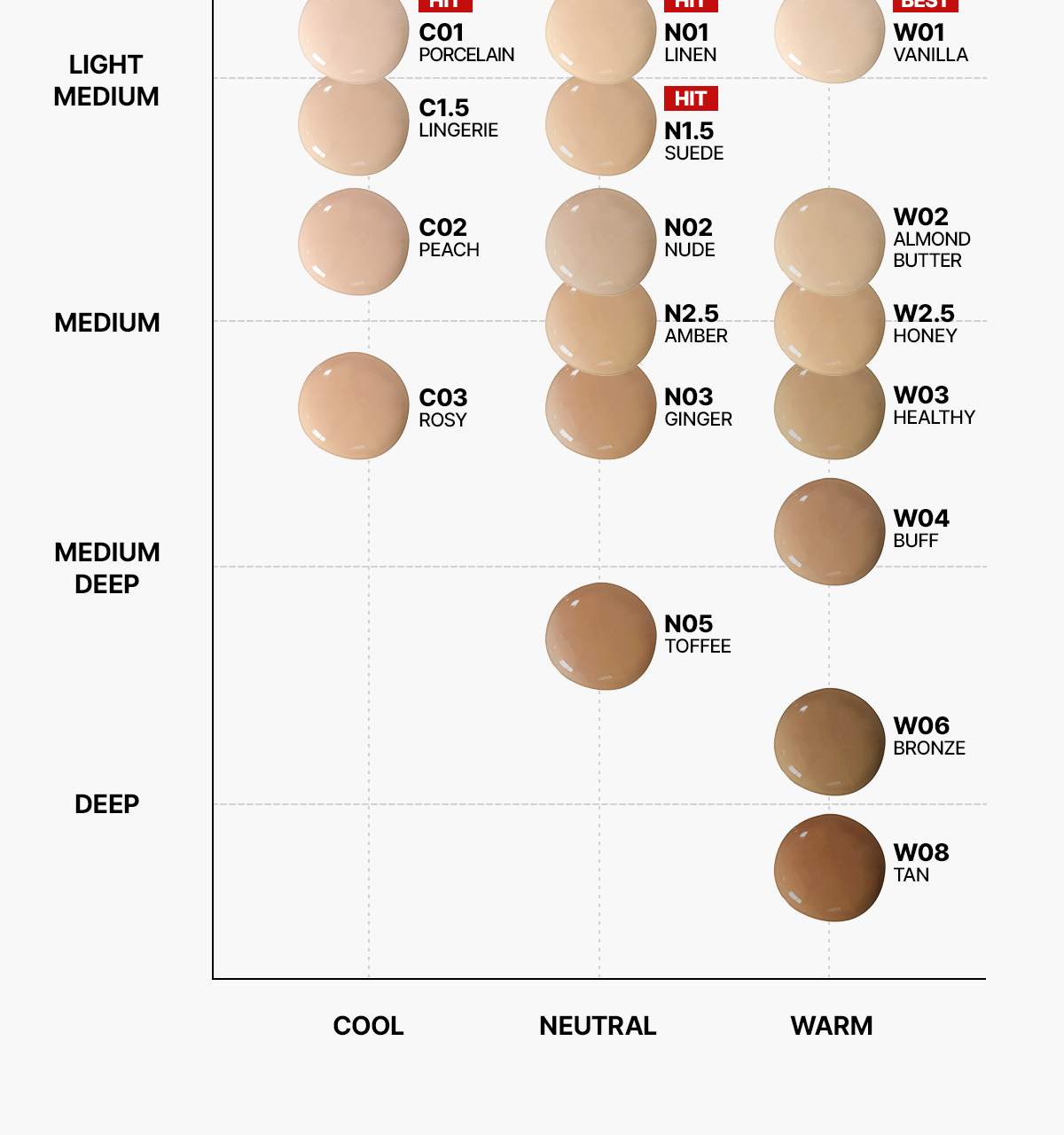 Find your perfect match with the custom color system designed by tfit’s extensive color research. This serum foundation blends seamlessly with your skin tone, giving a natural, second-skin finish. The wide range of shades ensures that you get a color tailored to your unique complexion.