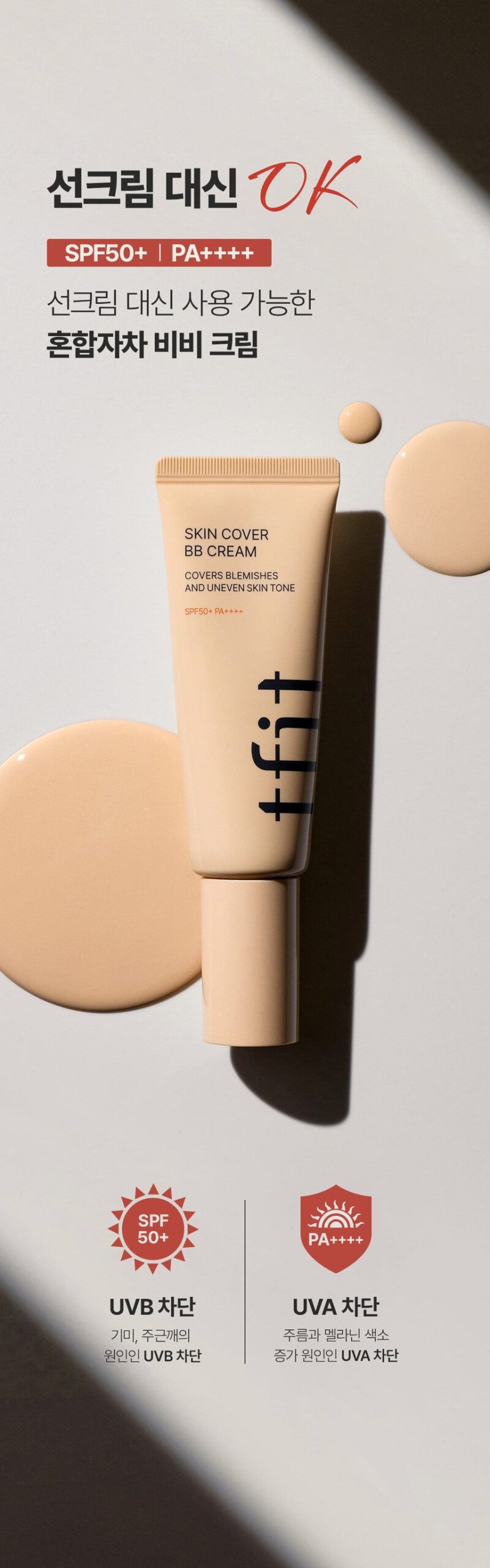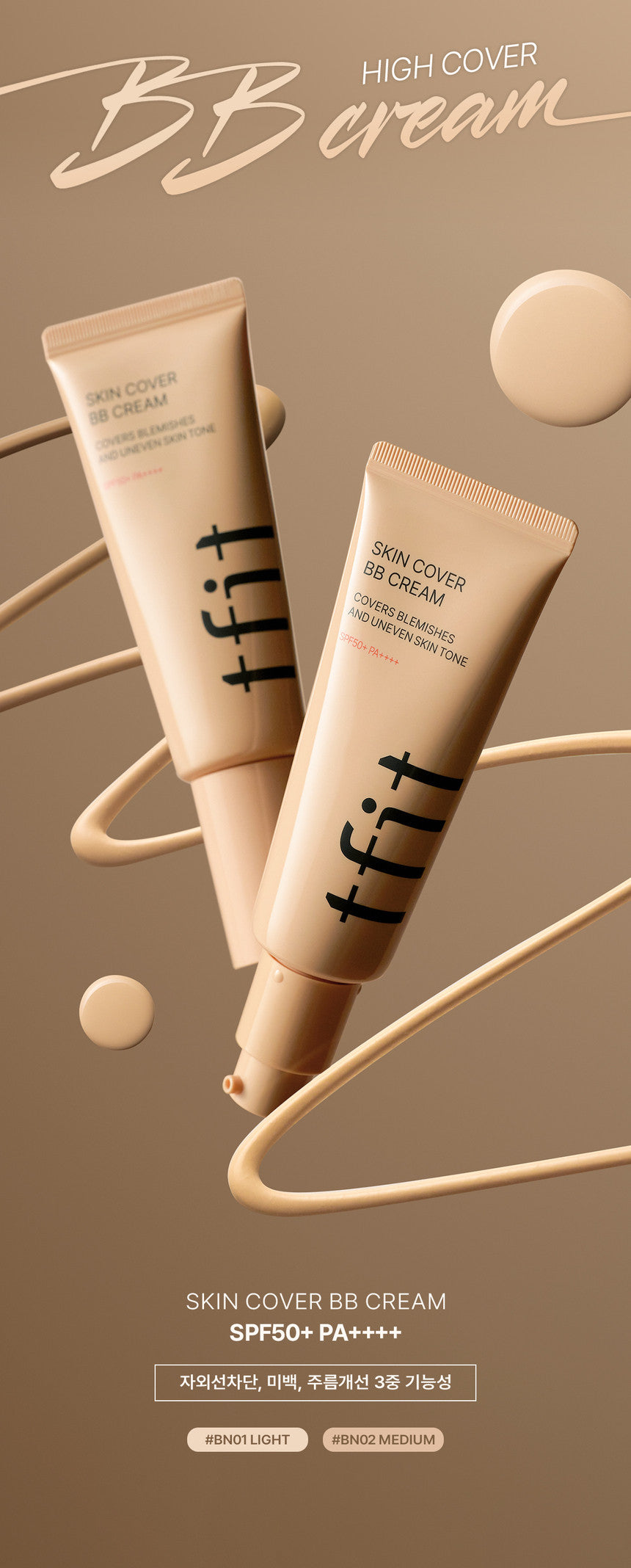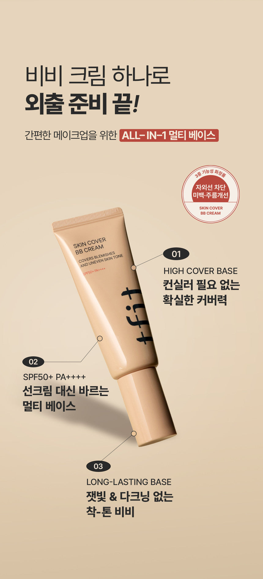 This high-cover BB cream provides flawless coverage with just one application, effectively concealing both large and small imperfections. It combines UV protection, whitening, and wrinkle improvement properties, making it an essential multi-functional cosmetic.