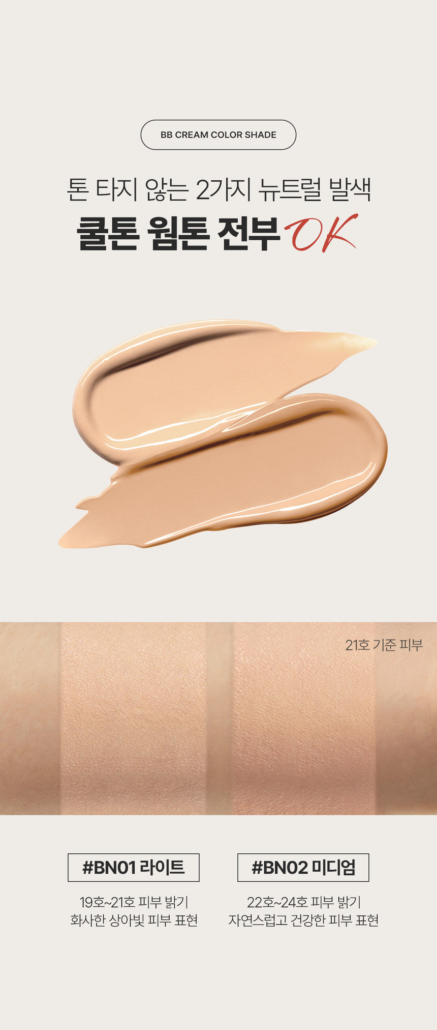 - BN01 LIGHT: Ideal for skin tones in the 19-21 range, offering a bright ivory finish for a radiant look.