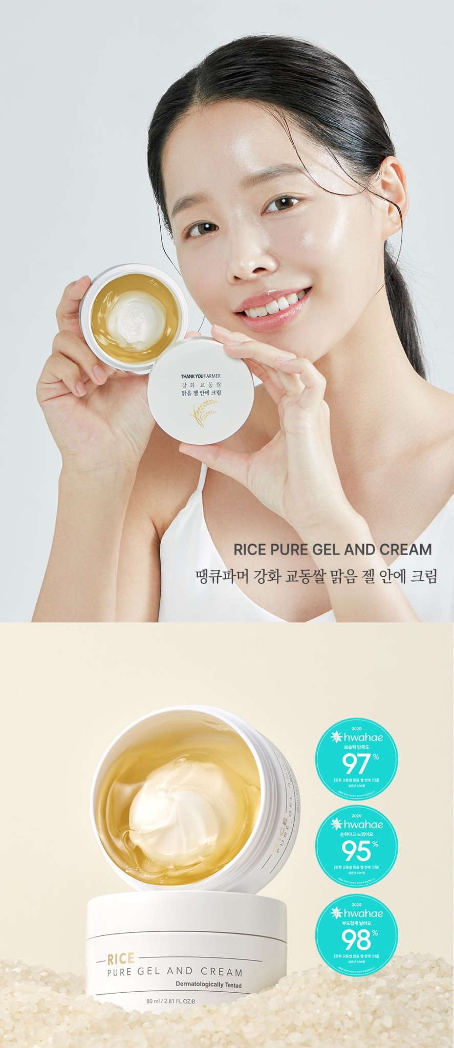 Experience the innovative dual-textured moisturizer from Thank You Farmer featuring Ganghwa Gyodong Rice extract. This unique cream combines a soothing gel center with a nourishing cream layer, allowing you to customize your skincare routine based on your skin condition.