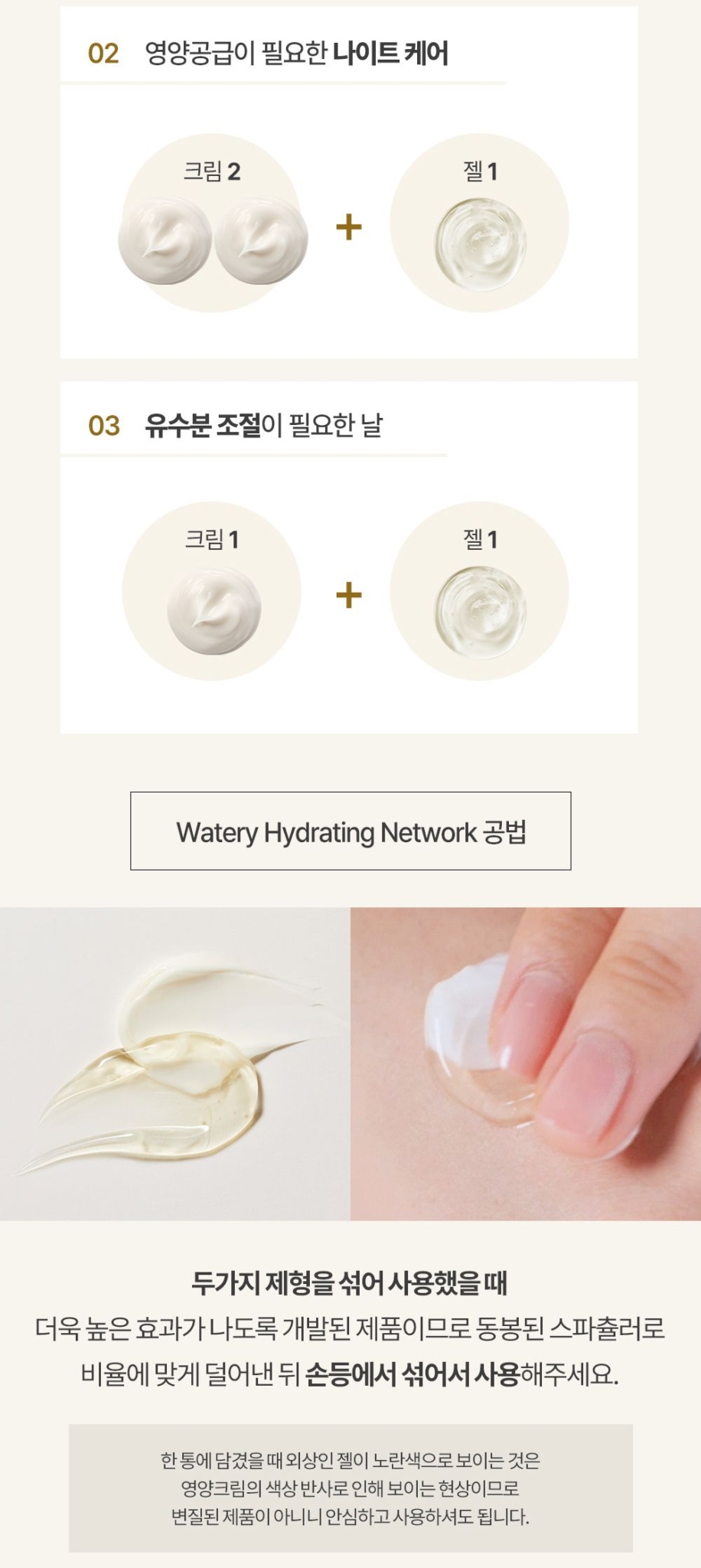 - After cleansing and toning, mix the gel and cream portions according to your skin needs
