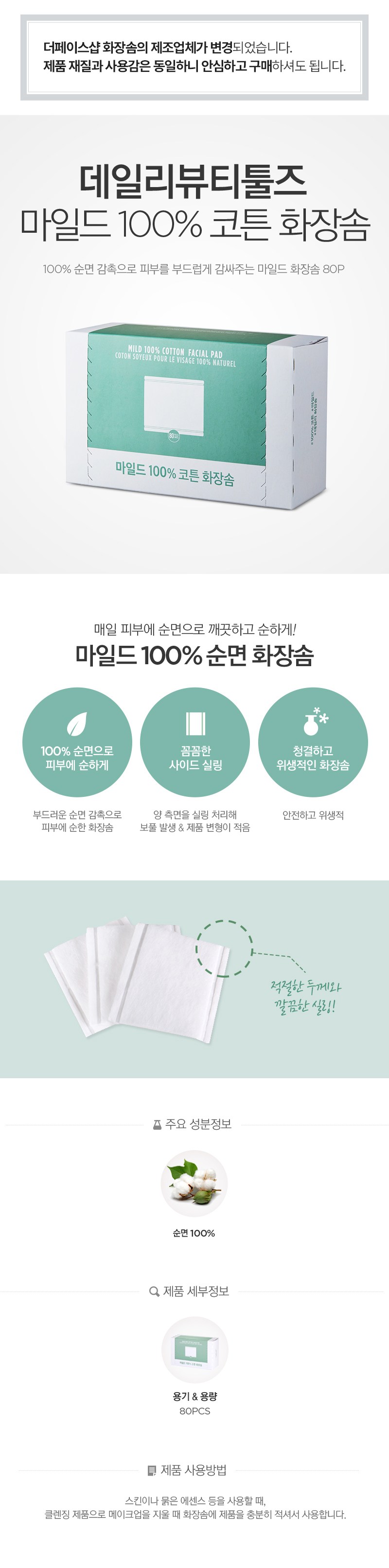 The Face Shop Daily Mild 100% Cotton Pads are made from 100% pure cotton for the gentlest touch on your skin. These premium quality pads wrap your skin in soft, mild comfort while effectively applying and removing skincare products.