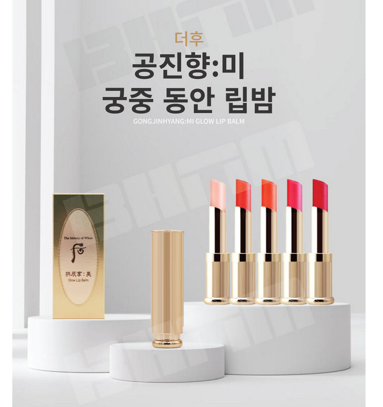 The History of Whoo Gongjinhyang Mi Glow Lip Balms are luxuriously nourishing, stick-type lip balms formulated with the ancient recipe exclusively used by Korean royalties called Gong Jin Bi Dan, which features precious jewels such as gold, amber and pearl. The moisturising formula creates a strong moisture veil to keep lips moisturised for hours without stickiness.