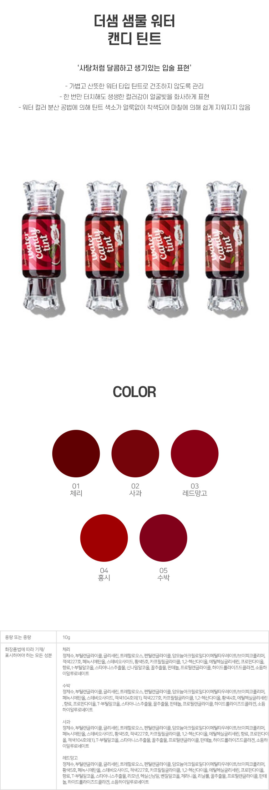 Indulge in candy-sweet lip color with THE SAEM Saemmul Water Candy Tint. This adorable candy wrapper-shaped bottle contains a water-based tint that delivers juicy, fresh color to your lips.