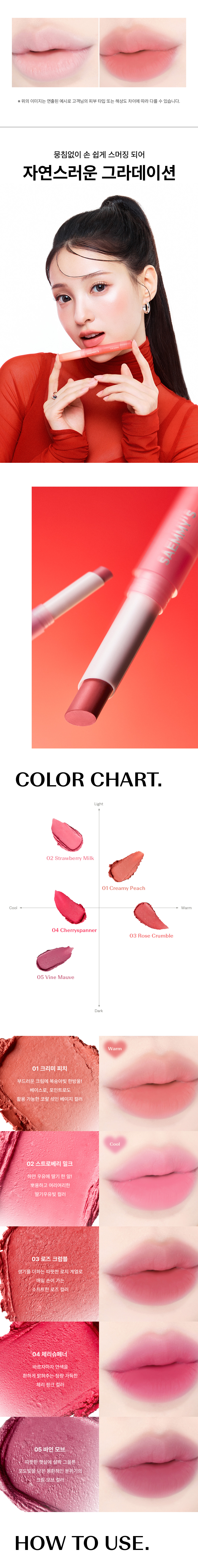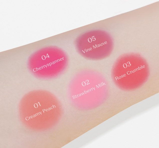 - 02 Strawberry Milk: Embrace a pure and lovely mood. Reminiscent of milky strawberry, this shade adds a soft, adorable touch to a cool-toned base, creating a charming and innocent vibe.