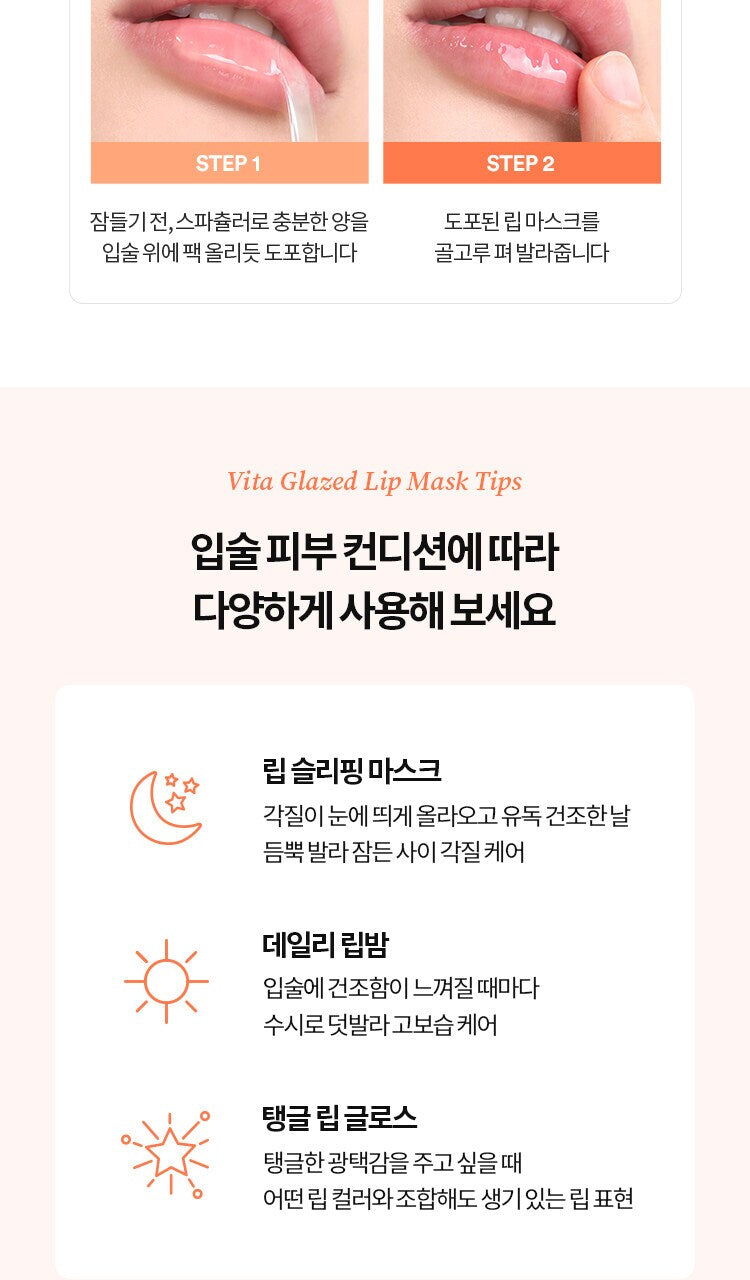 Before going to bed, or at the during the makeup, use a spatula to apply a generous amount as if you’re placing a pack on your lips. Spread the lip mask evenly.