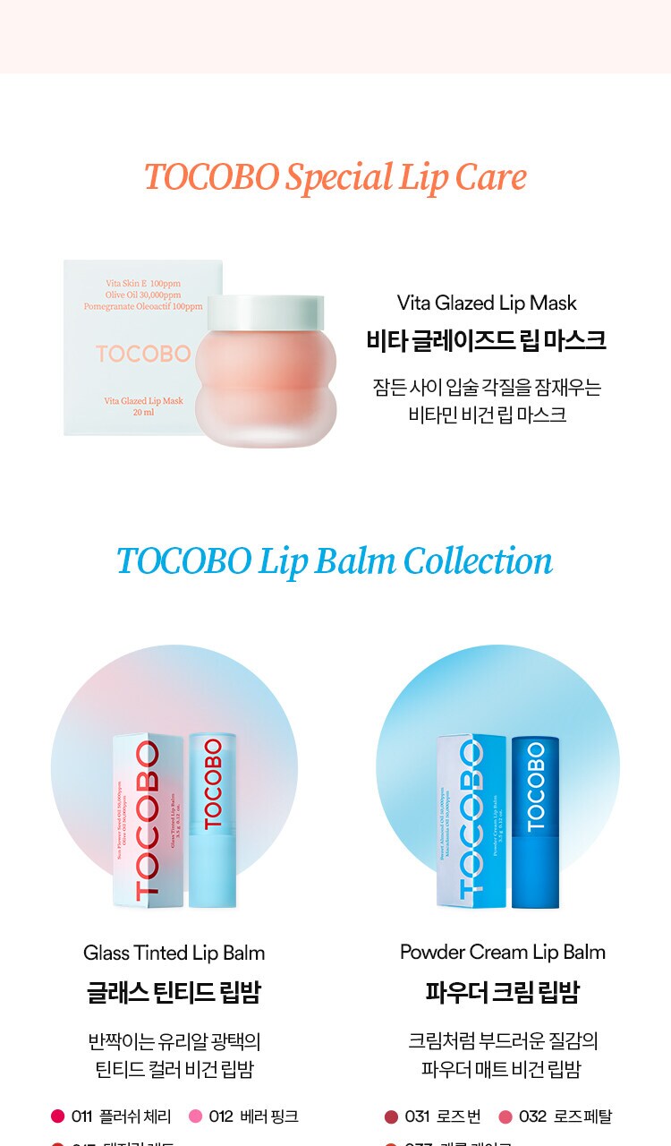 – **Glass Tinted Lip Balm**: Offers a tinted color with a sparkling glass bead luster.
