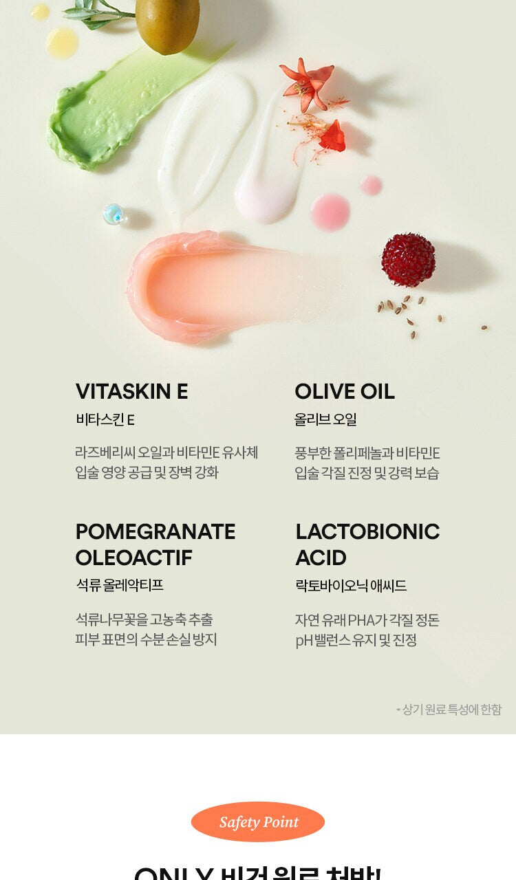 – **Pomegranate Ole Actif & Olive Oil**: Supplies concentrated pomegranate flower extract to combat moisture loss on the skin surface.