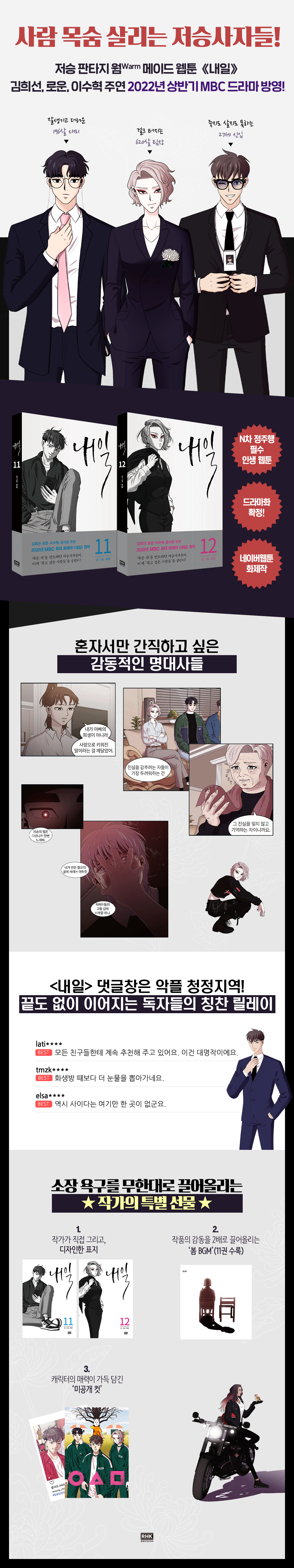 Tomorrow is a Korean webtoon that follows the story of an unemployed college graduate, Jun-Woong, who slips into a coma when he accidentally falls off of a bridge. During his unconscious state, he receives an invitation from the underworld corporation Flashback’s crisis response squad to join them on a temporary basis. By agreeing to this proposal, he not only has the potential to awaken early from his coma but also to eliminate the negative karma from his previous existence that has been hindering his job prospects. With nothing else to occupy his time, Jun-Woong seizes the opportunity to work with these ominous reapers and save lives on this beautiful day.