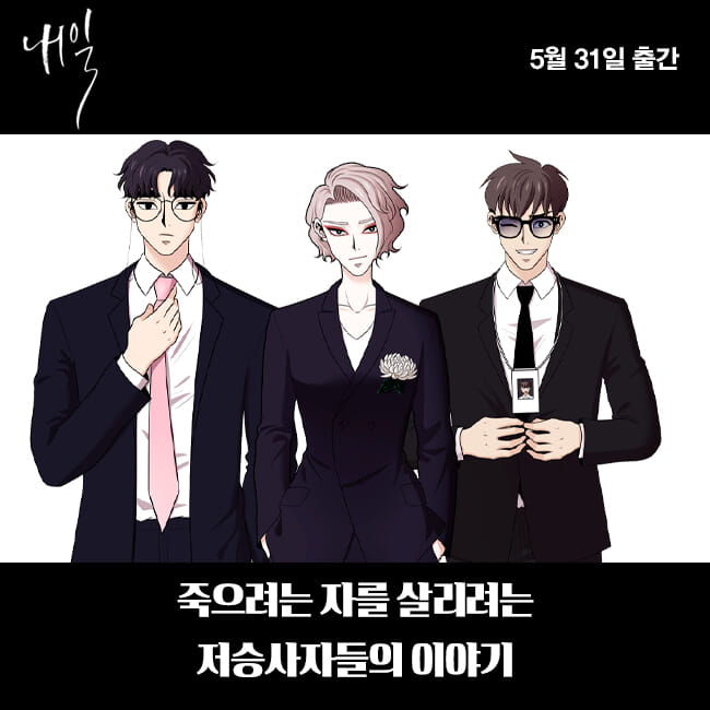 Tomorrow is a Korean webtoon that follows the story of an unemployed college graduate, Jun-Woong, who slips into a coma when he accidentally falls off of a bridge. During his unconscious state, he receives an invitation from the underworld corporation Flashback’s crisis response squad to join them on a temporary basis. By agreeing to this proposal, he not only has the potential to awaken early from his coma but also to eliminate the negative karma from his previous existence that has been hindering his job prospects. With nothing else to occupy his time, Jun-Woong seizes the opportunity to work with these ominous reapers and save lives on this beautiful day.
