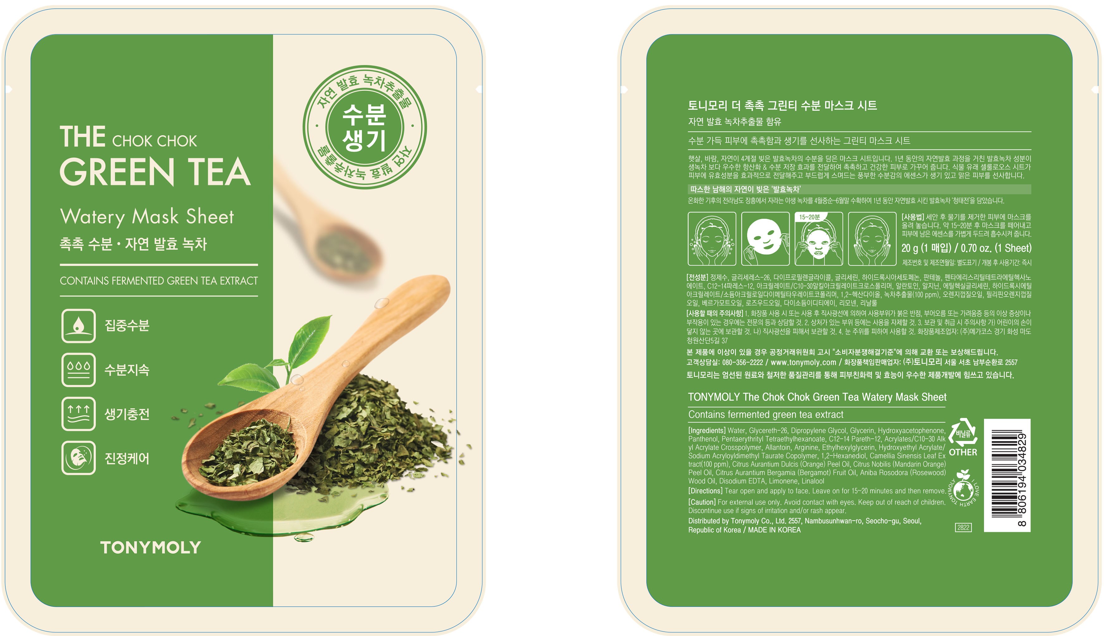| Product Name | TONYMOLY The Chok Chok Green Tea Watery Mask Sheet Set |
