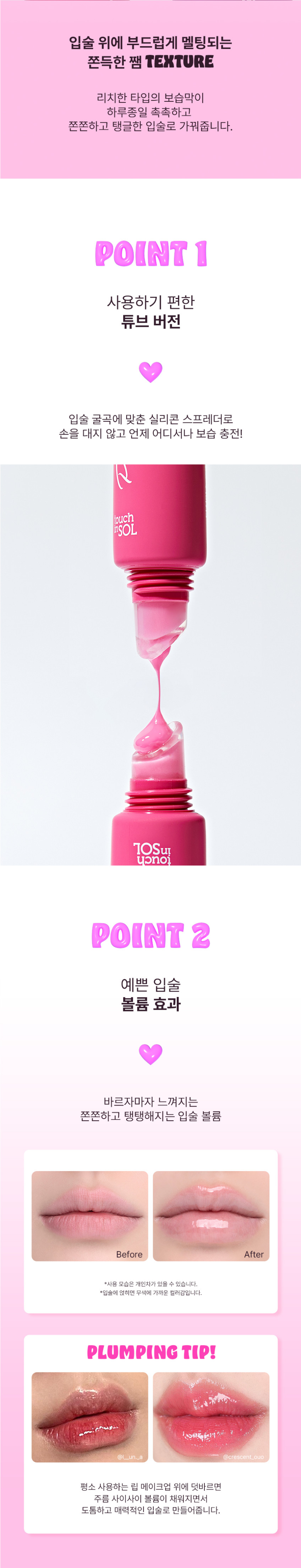 Feel an immediate plumping sensation as your lips become smoother, bouncier, and more voluminous. - Point 3: Deeply Moisturizing Dewy Barrier for Lasting Hydration