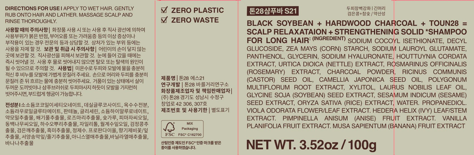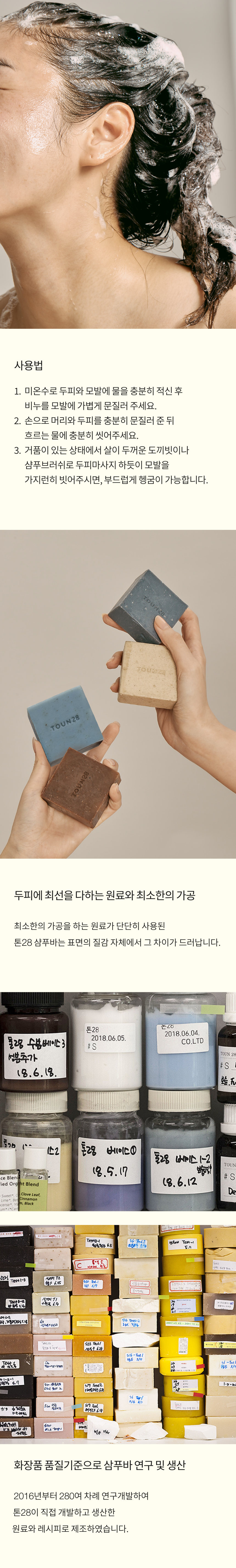 Since 2016, it has been researched and developed 280 times and has been manufactured with natural ingredients and recipes developed and produced by Toun 28, which has never been applied to any shampoo at home and abroad.