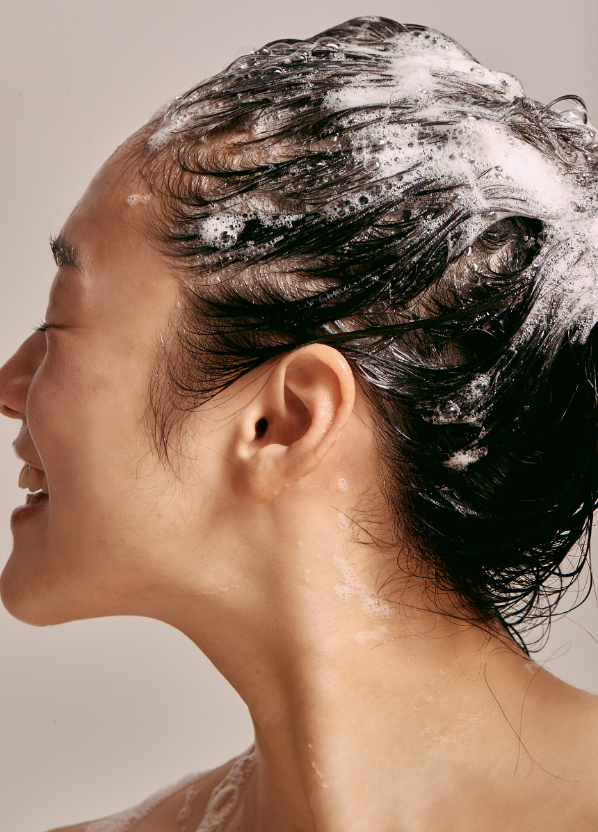 1. Lather up and massage the hair and the scalp gently with the foam.