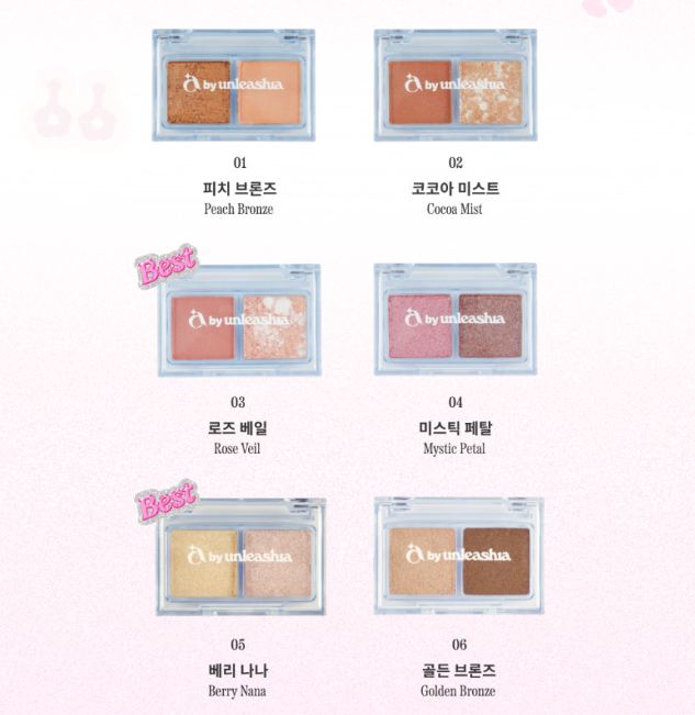 Each UNLEASHIA Cotton Candy Face Palette features two perfectly curated shades, blending captivating colors with a soft, shimmering finish. Choose your favorite or collect them all to express every facet of your unique style!