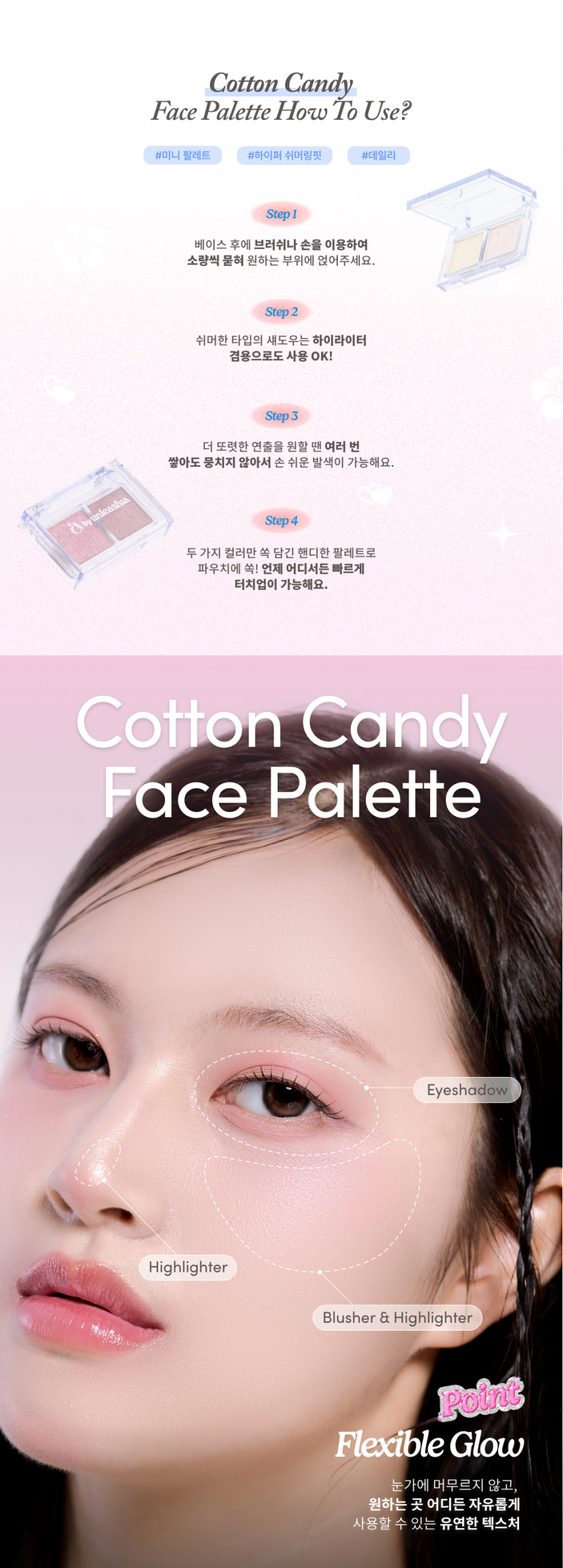 Experience the magic of effortless beauty with shades that melt seamlessly onto your skin, offering a versatile glow for your eyes, cheeks, and face. Whether you’re aiming for a subtle daytime sparkle or a vibrant evening shimmer, the Cotton Candy Face Palette is your secret weapon for a truly irresistible radiance.
