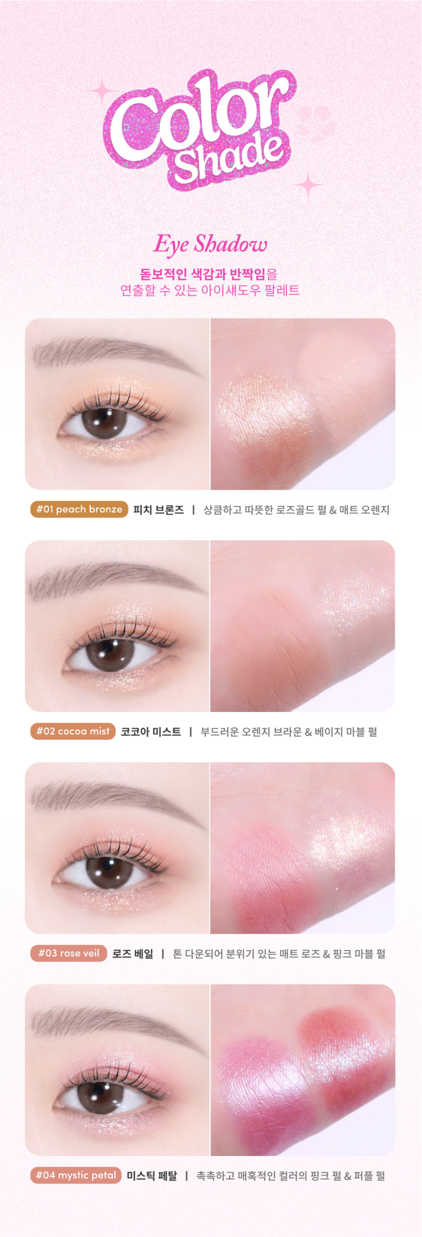 - Eyeshadow: Create dazzling eye looks with shimmering pearls and soft mattes.
