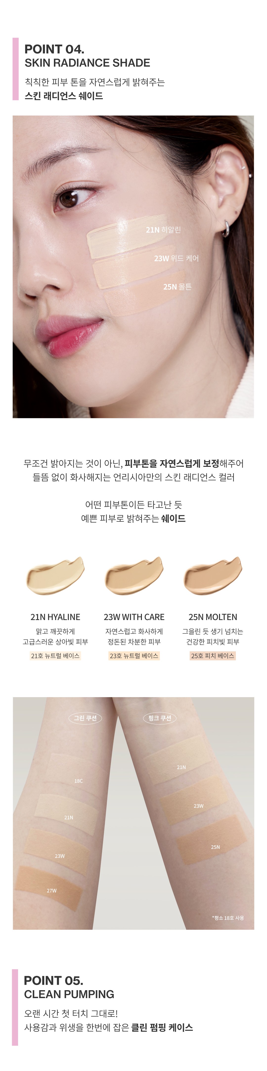 - 21N HYALINE: A light neutral shade, perfect for fair skin tones seeking a bright, clear complexion.