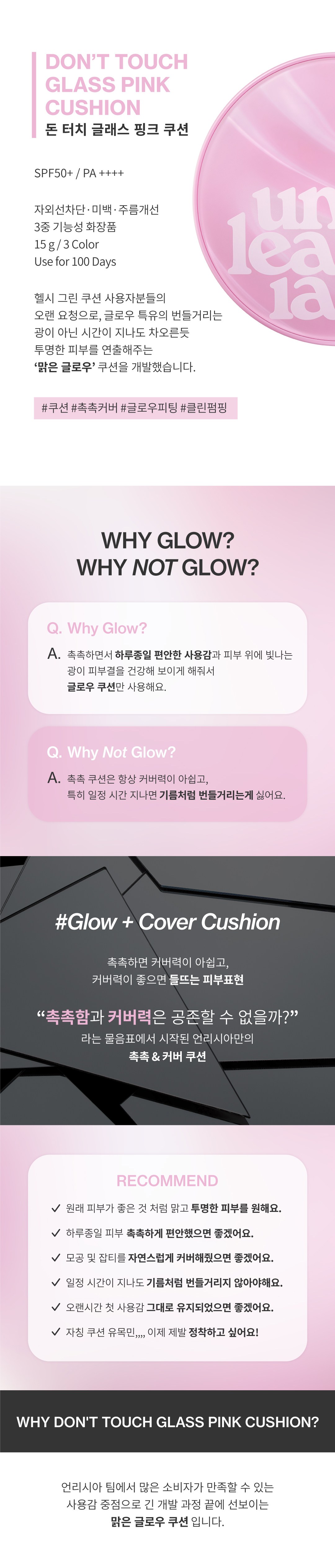 UNLEASHIA Don’t Touch Glass Pink Cushion – High Coverage SPF50+ Glass Skin Foundation