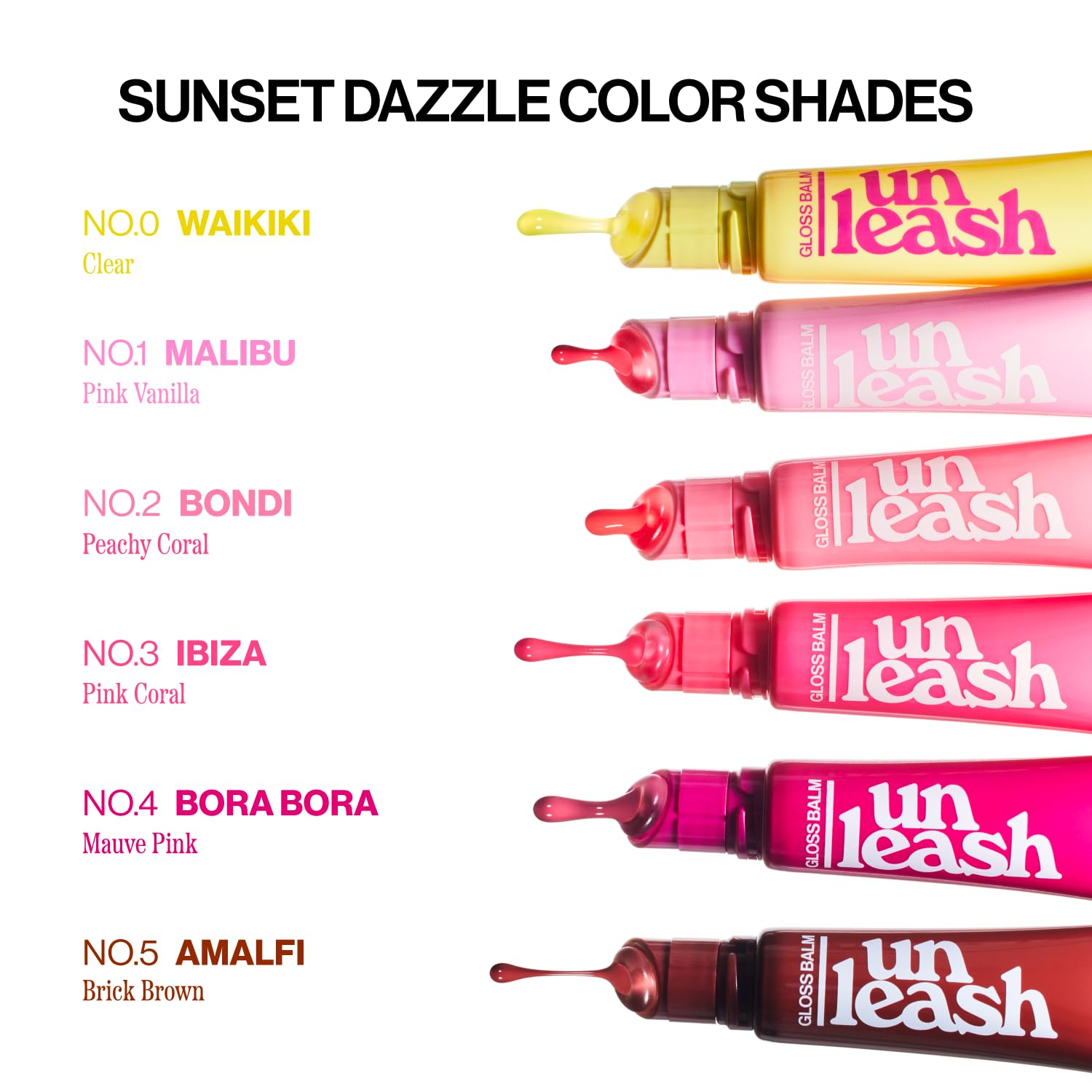 The Unleashia Sunset Dazzle Gloss Balm combines the nourishing care of a lip balm with the radiant shine of a gloss for effortlessly beautiful lips. Named after the world’s most stunning sunset destinations, each shade captures the golden, warm hues of a perfect sunset moment.