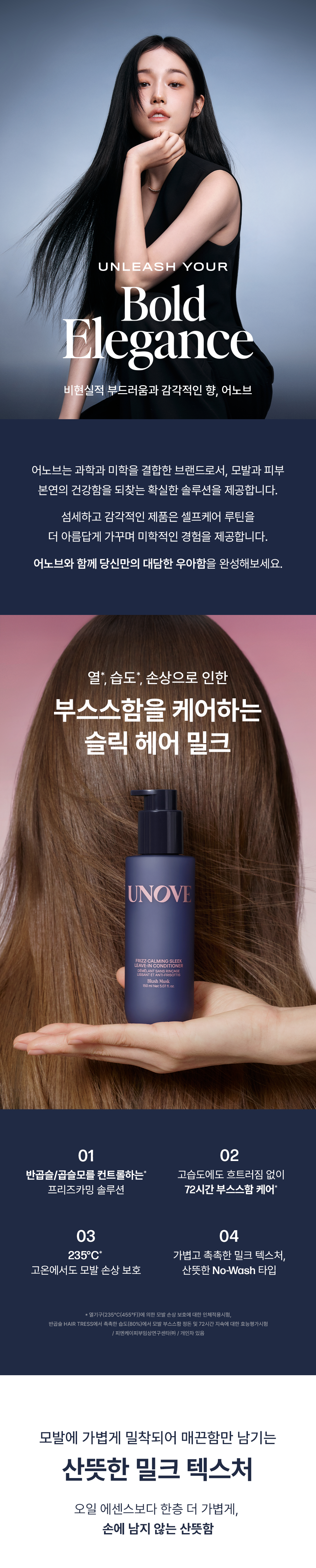 Elevate your hair game with UNOVE Frizz-Calming Sleek Leave-In Conditioner. Say goodbye to bad hair days and embrace the confidence of consistently smooth, beautiful, and elegantly scented hair. Add this essential Korean hair care staple to your routine today and witness the transformation!