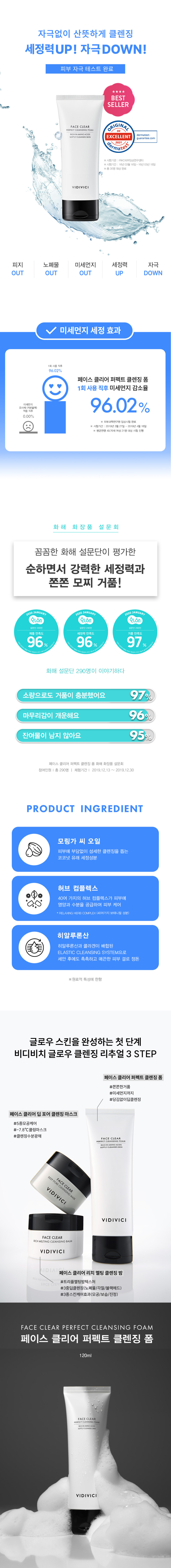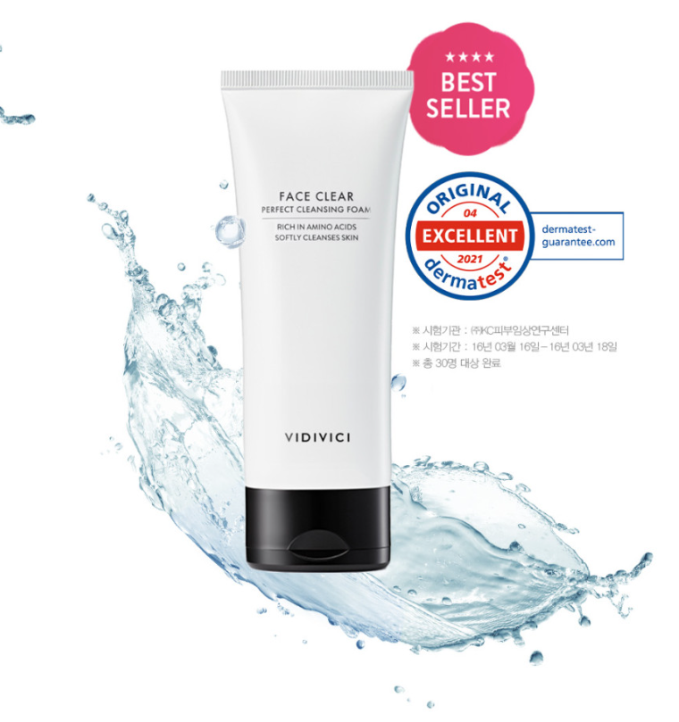 The dermatological test conducted by our clinic on VIDIVICI FACE CLEAR PERFECT CLEANSING FOAM in accordance with international guidelines for the dermatological test in humans showed no skin irritation reactions.