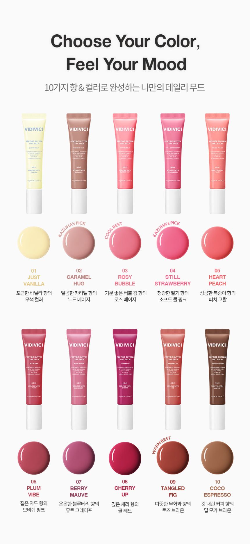 For a beautiful pout, simply apply the VIDIVICI Peptide Butter Tint Balm directly to your lips as often as needed throughout the day. Wear it alone for a natural look or as a hydrating base under your favorite lipstick.