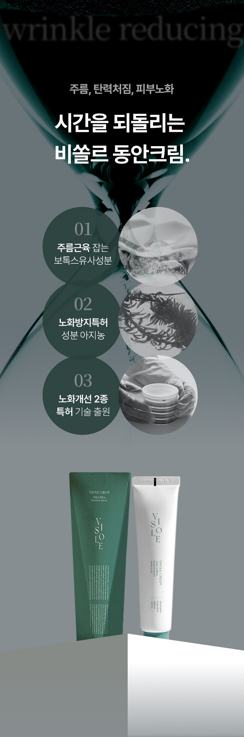 At the heart of VISOLE Dongan Cream lies a groundbreaking patented anti-aging ingredient, officially recognized by the Korean Intellectual Property Office. This advanced formulation is specifically designed to combat the visible signs of aging by including powerful wrinkle improvement extracts that rejuvenate your skin at a deeper level.
