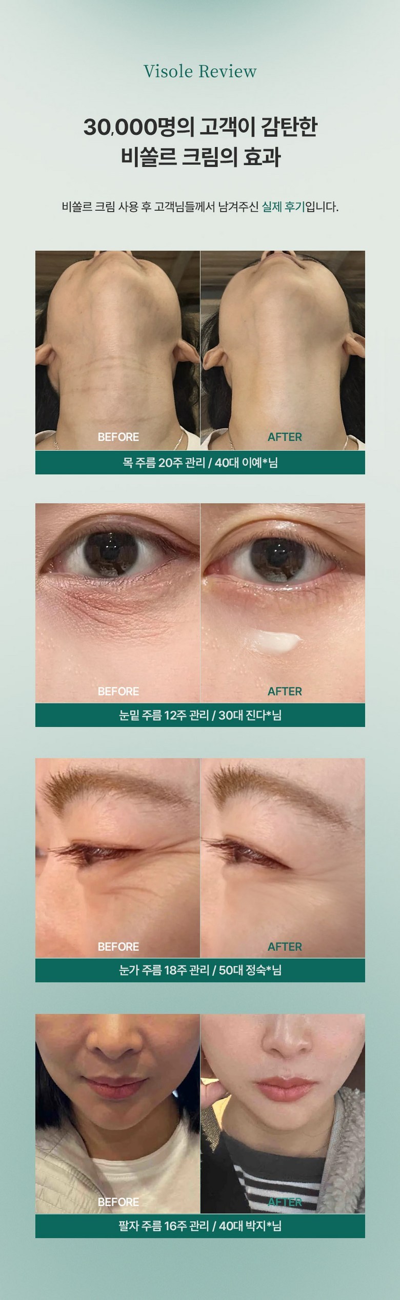 See the undeniable improvement for yourself. VISOLE Dongan Cream effectively reduces the depth and length of wrinkles, revealing visibly smoother and younger-looking skin.