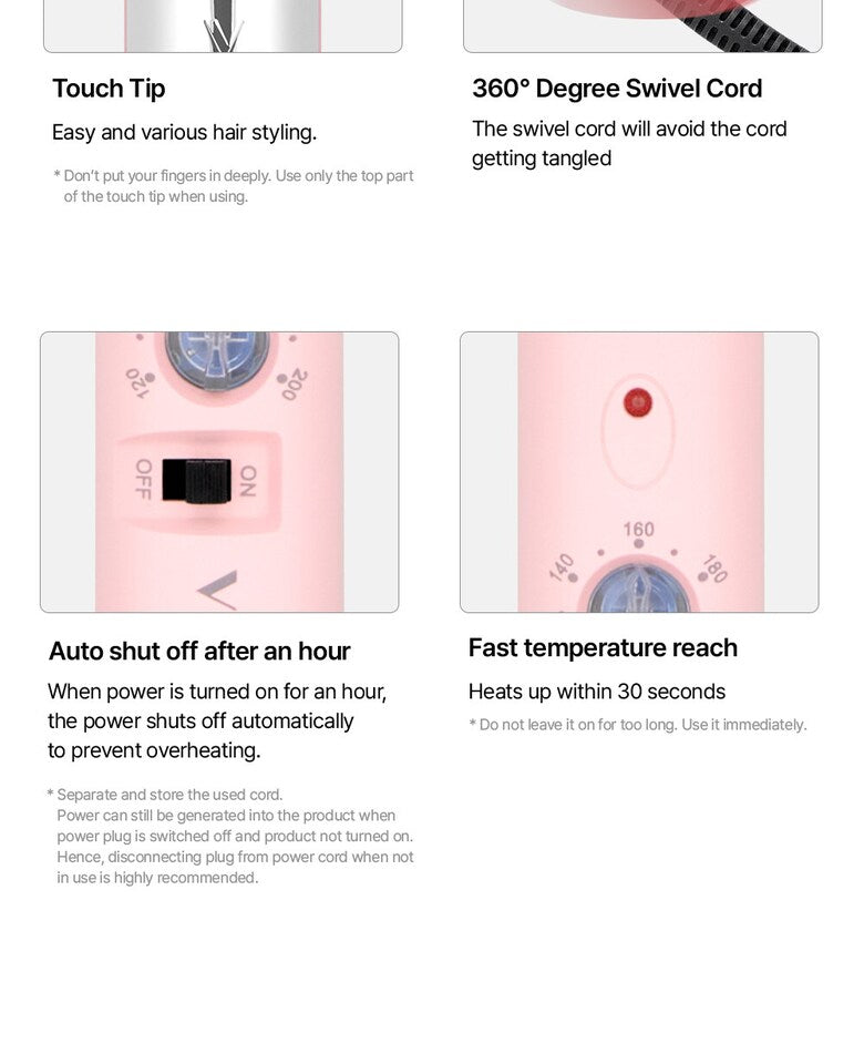- Reaches the set temperature within one minute for efficient styling.