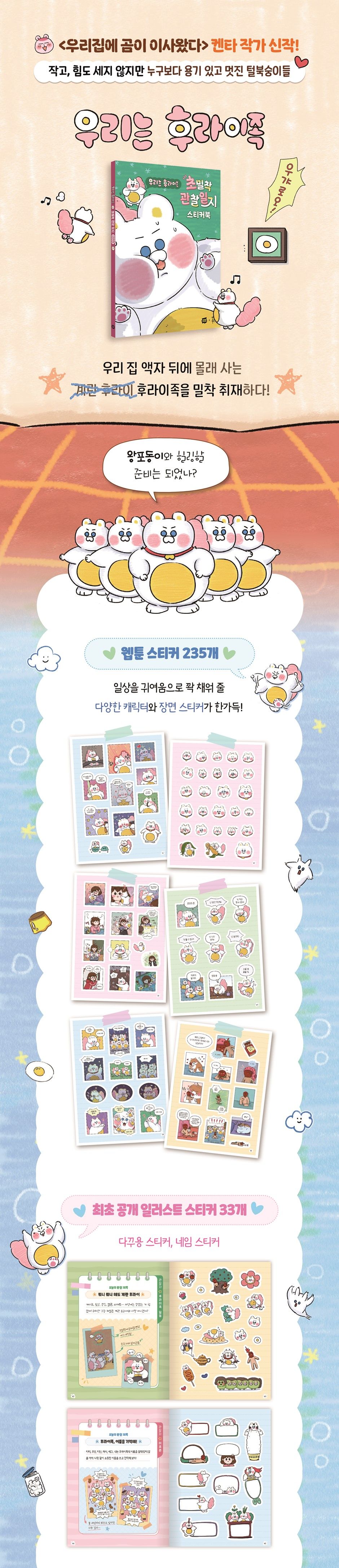 Yo, have you checked out ‘We Are the Fry Tribe’ sticker book? It’s seriously wild! So, Hojun’s moving to a countryside setup because of asthma issues. Then this crazy fluffy white monkey just rolls in with piercing blue eyes telling him to get outta there. The illustrations pop so much—it kinda feels like I’m right alongside them! Plus, these adorable postcards are an awesome bonus for anyone who grabs it before they run out. Honestly, it’s like diving into someone else’s adventure without leaving your couch—totally vibey!