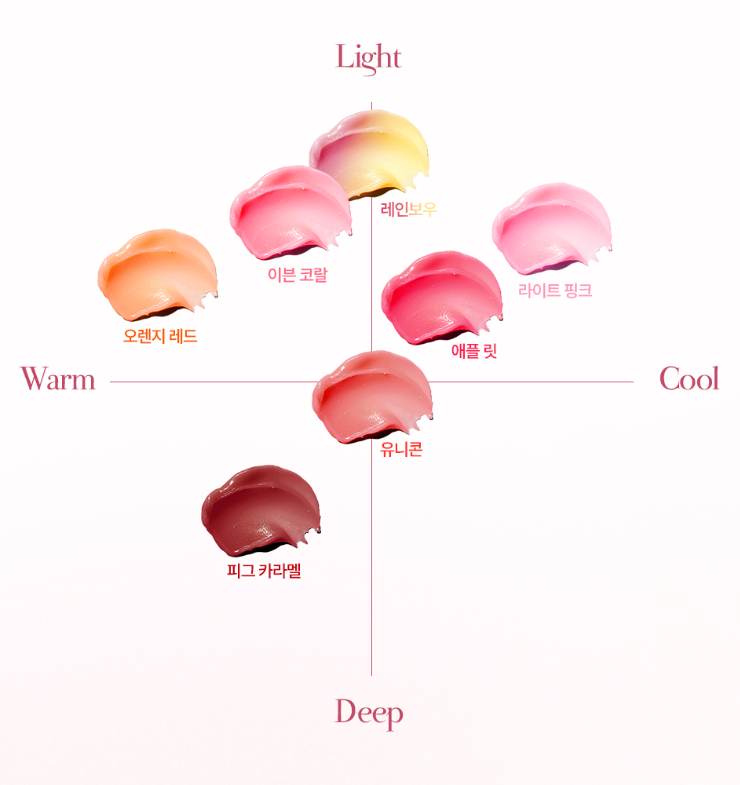 YNM Honey Lip Balm offers a spectrum of flattering tints designed to complement every skin tone. Find your ideal match on our unique color spectrum, ranging from light to deep and warm to cool: