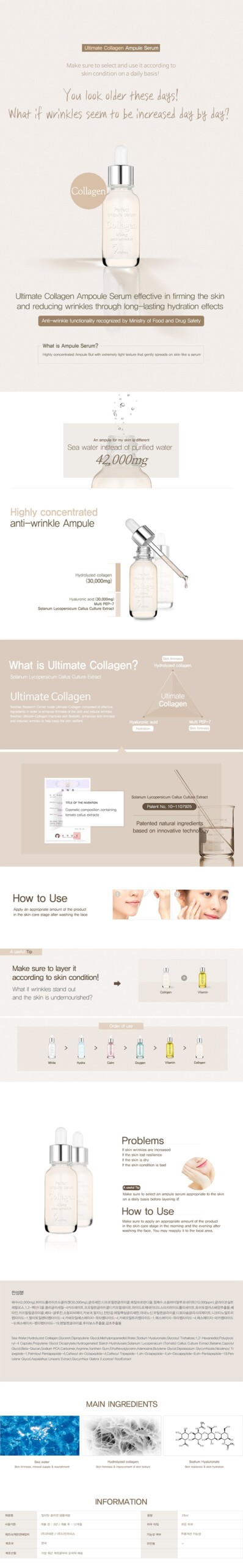 - FIRMING & LIFTING : Small-sized Collagen which has high absorption rate into skin, and it firms and lifts sagging skin while slowing down the aging skin. Contains highly concentrated collagen and adenosine.