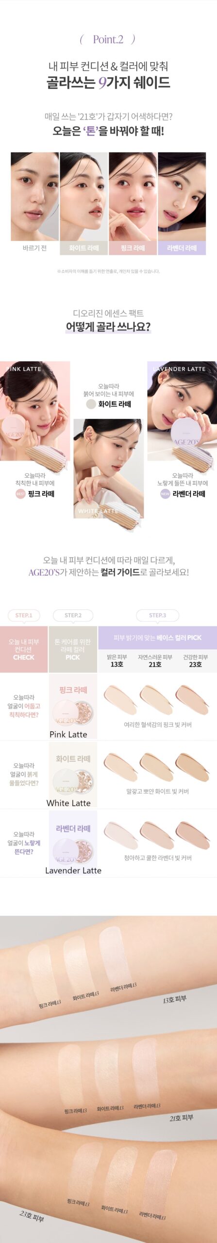 Pink Latte: Contains Niacinamide for brightening care, ideal for yellow-toned skin seeking a lively complexion.