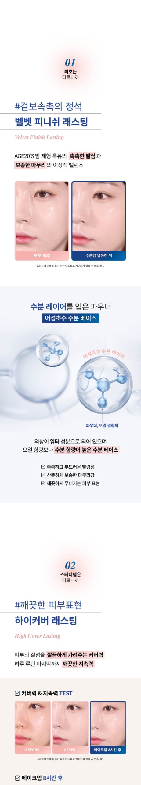 Okay, so let me spill some tea on the AGE20’s Velvet Lasting Pact! This stuff is next-level. 😍 I mean, it gives off this incredible soft velvet vibe that’s totally not cakey or heavy – feels like I’m wearing a cloud or something (who knew makeup could feel so chill?). It glides on super smoothly and keeps that moisture game strong for ages—like literally lasted through brunch with my pals today! My face looked as fresh at sunset as it did when I applied. Seriously recommend for anyone looking to keep things breezy yet fabulous!