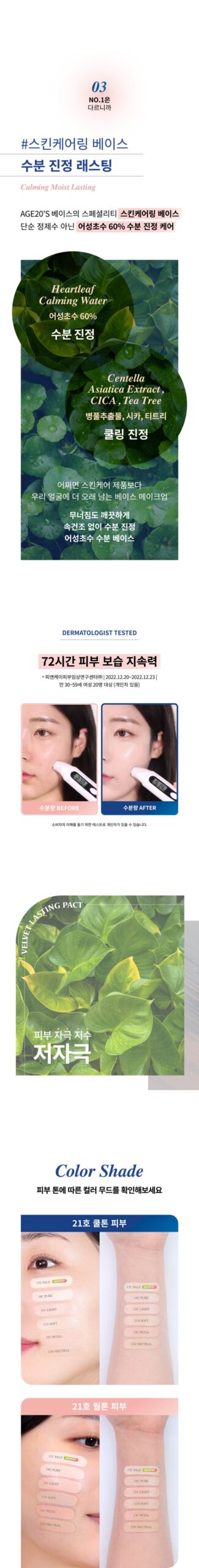 I recently tried the AGE20’s Velvet Lasting Pact and was genuinely impressed by its performance. The powder offers a unique moisture layer that provides a creamy texture upon application, which feels incredibly soft against my skin. I loved how it doesn’t feel heavy or burdensome at all, perfect for daily wear. After applying it in the morning, I noticed that my complexion remained fresh with minimal touch-ups throughout the day; impressive lasting power up to 70 hours as advertised! The calming properties also helped soothe my sensitive skin without any irritation.